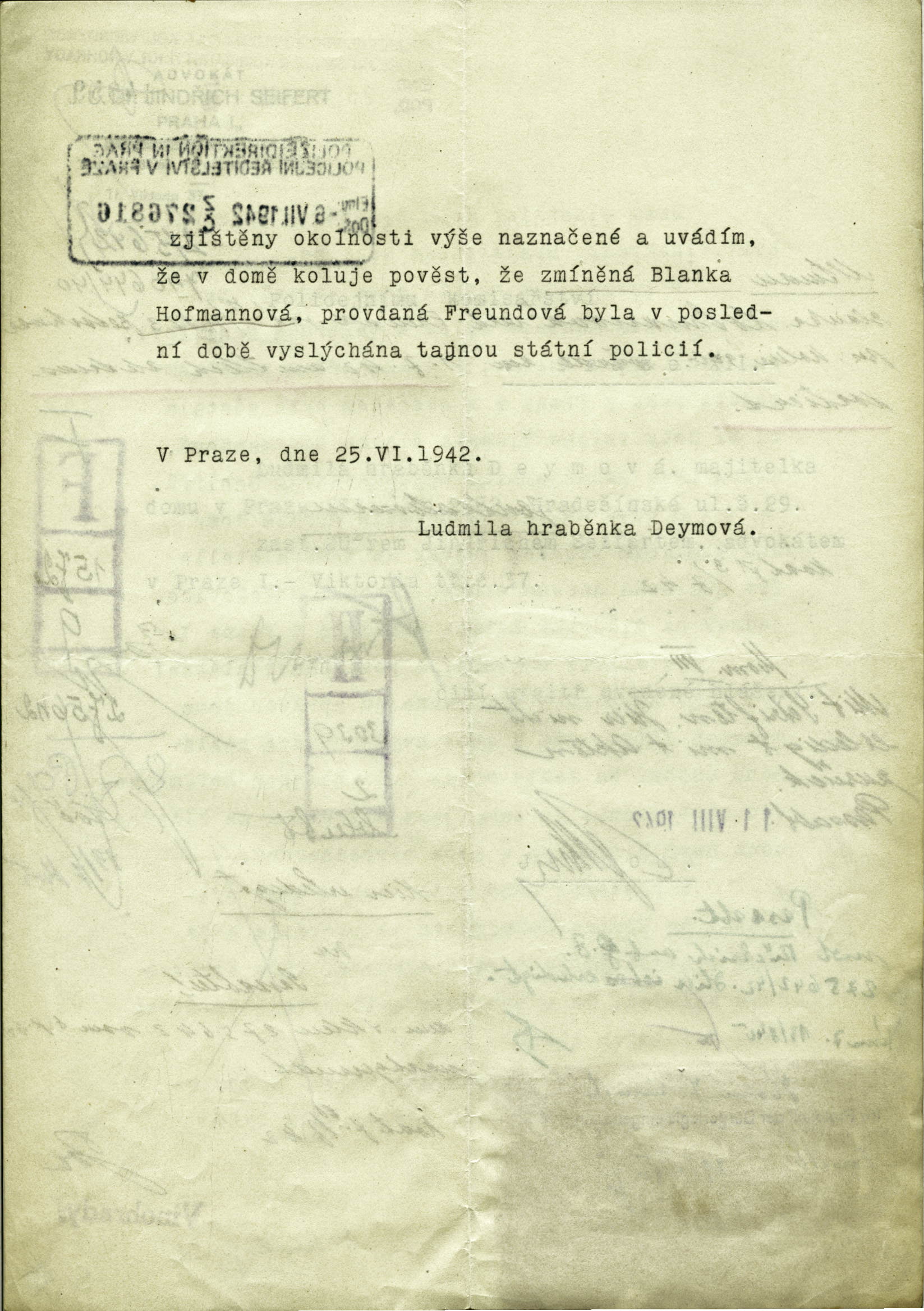 National archives Prague > Police Directorate Prague > 1941-1950 > F > Freundová Blanka