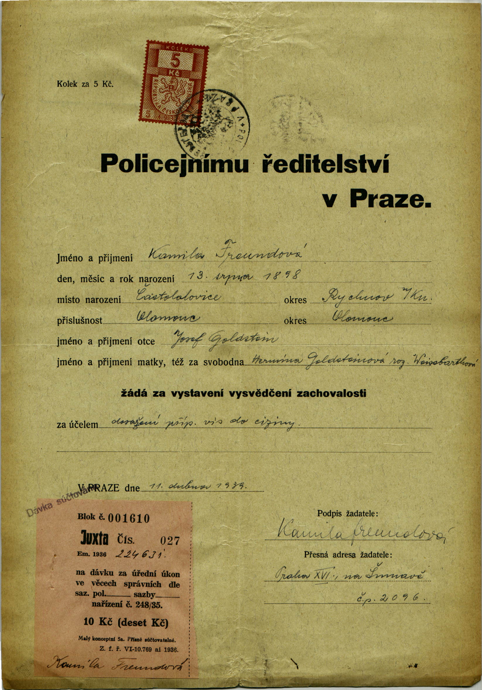 National archives Prague > Police Directorate Prague > 1941-1950 > F > Freundová Kamila
