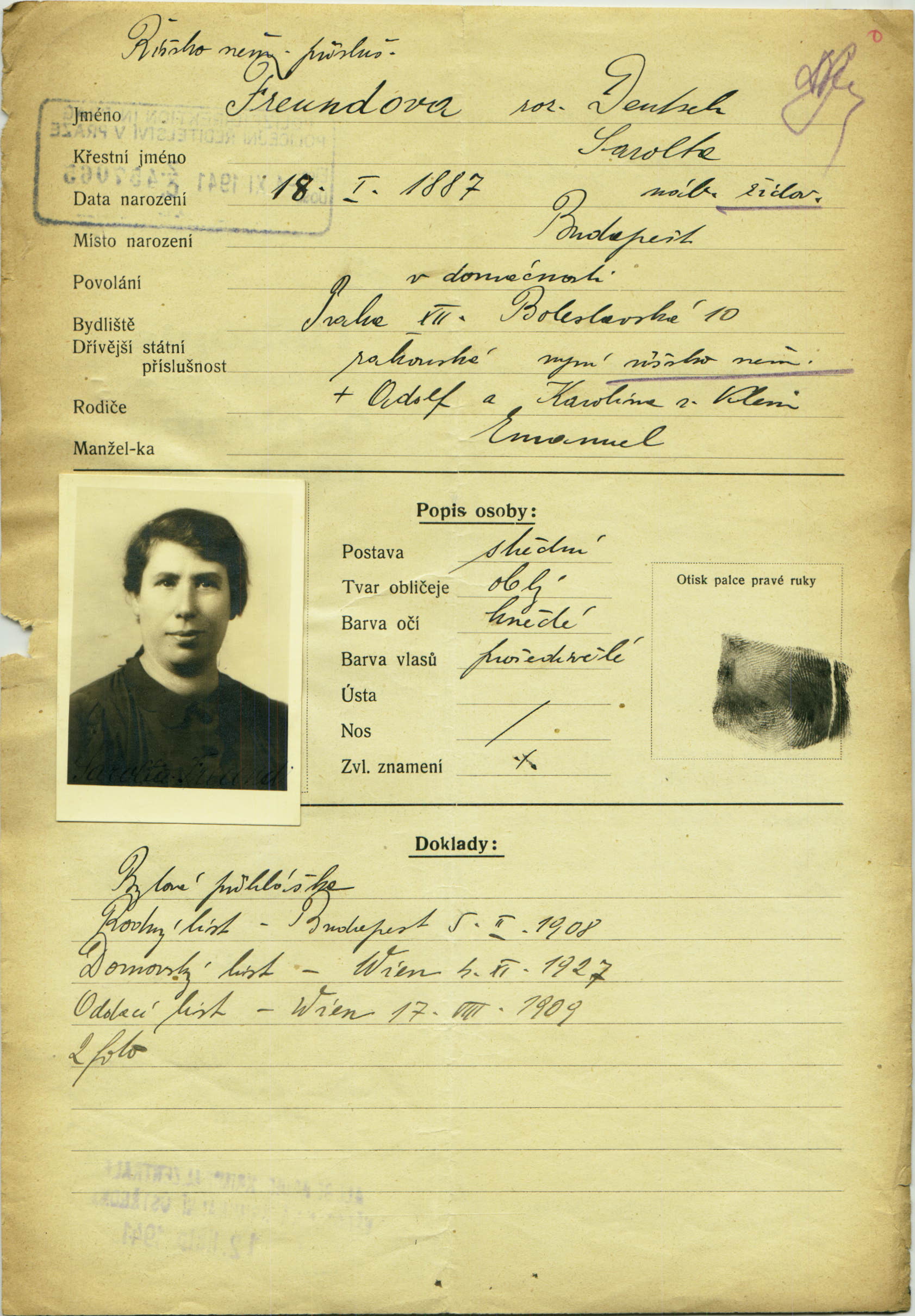 National archives Prague > Police Directorate Prague > 1941-1950 > F > Freundová Šarlota