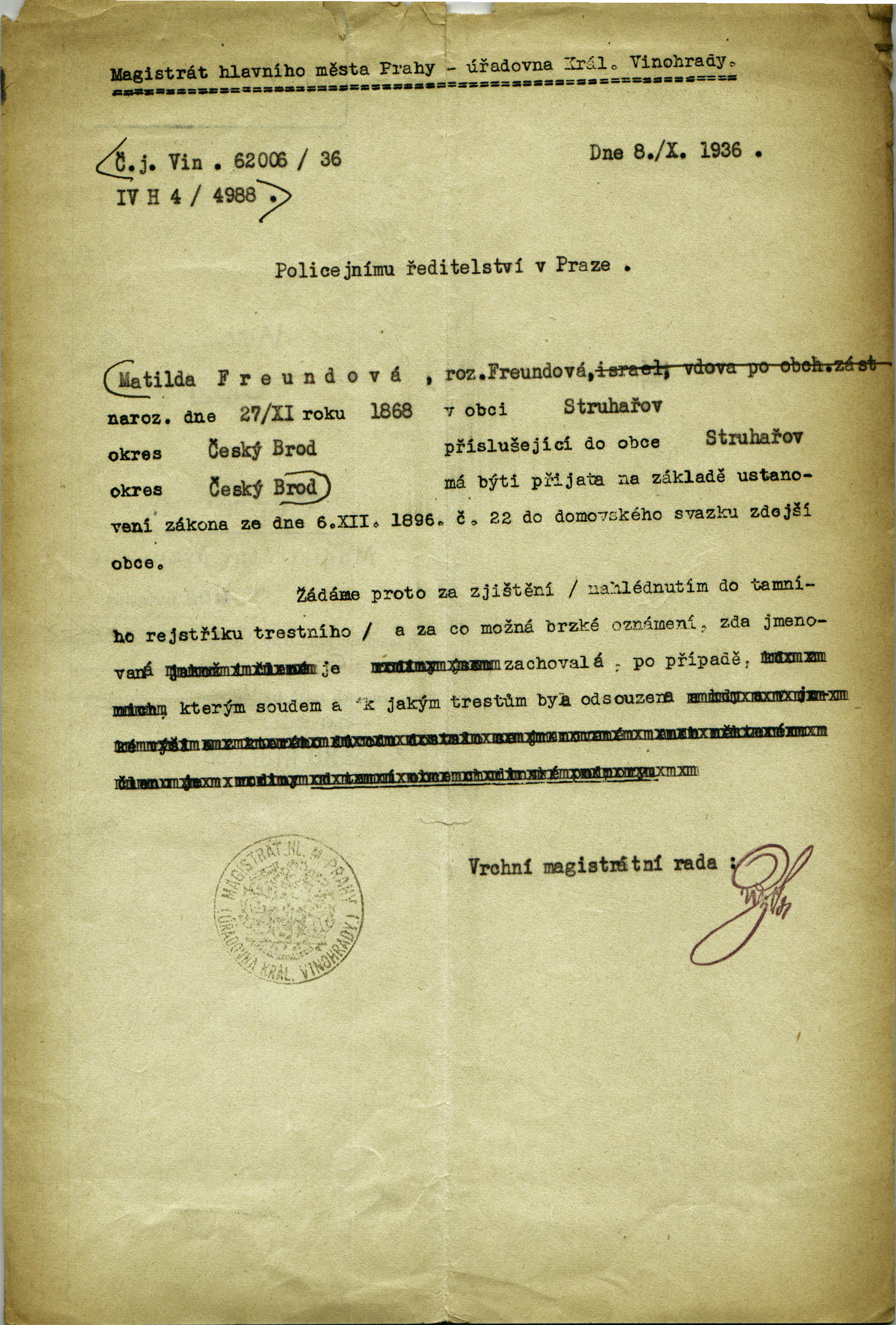 National archives Prague > Police Directorate Prague > 1941-1950 > F > Freundová Mathilda