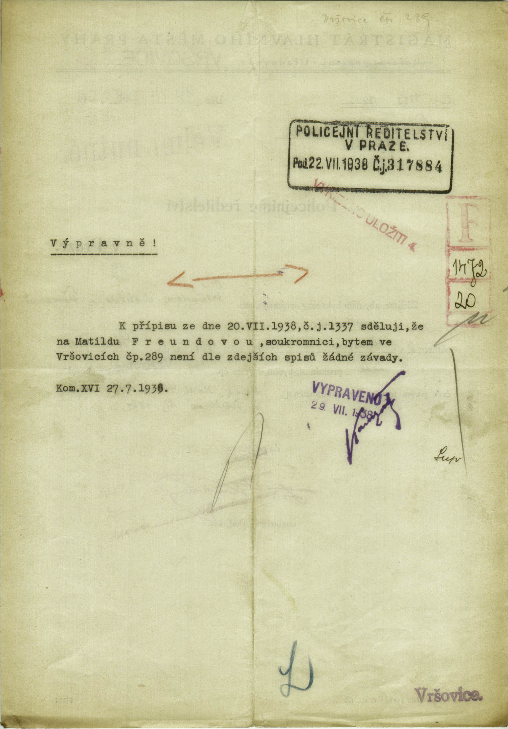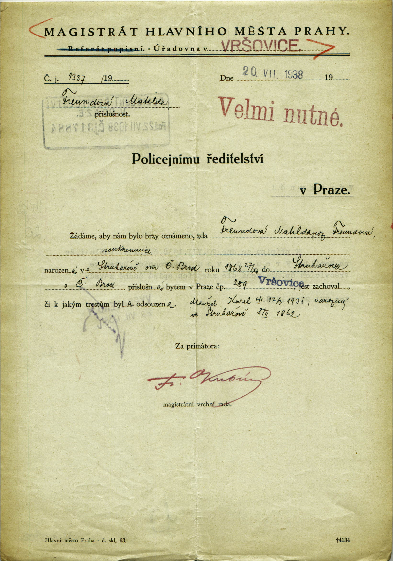 National archives Prague > Police Directorate Prague > 1941-1950 > F > Freundová Mathilda