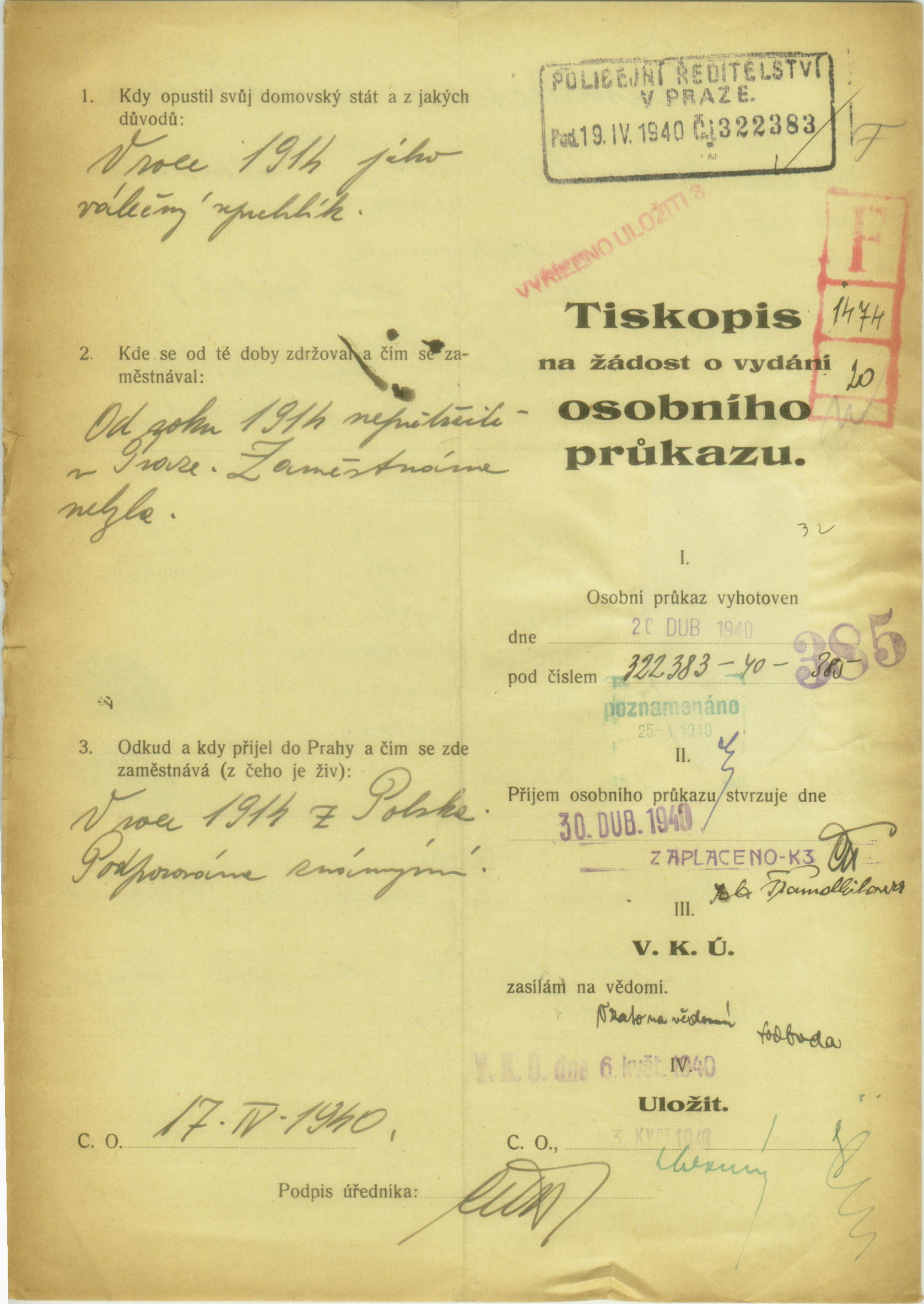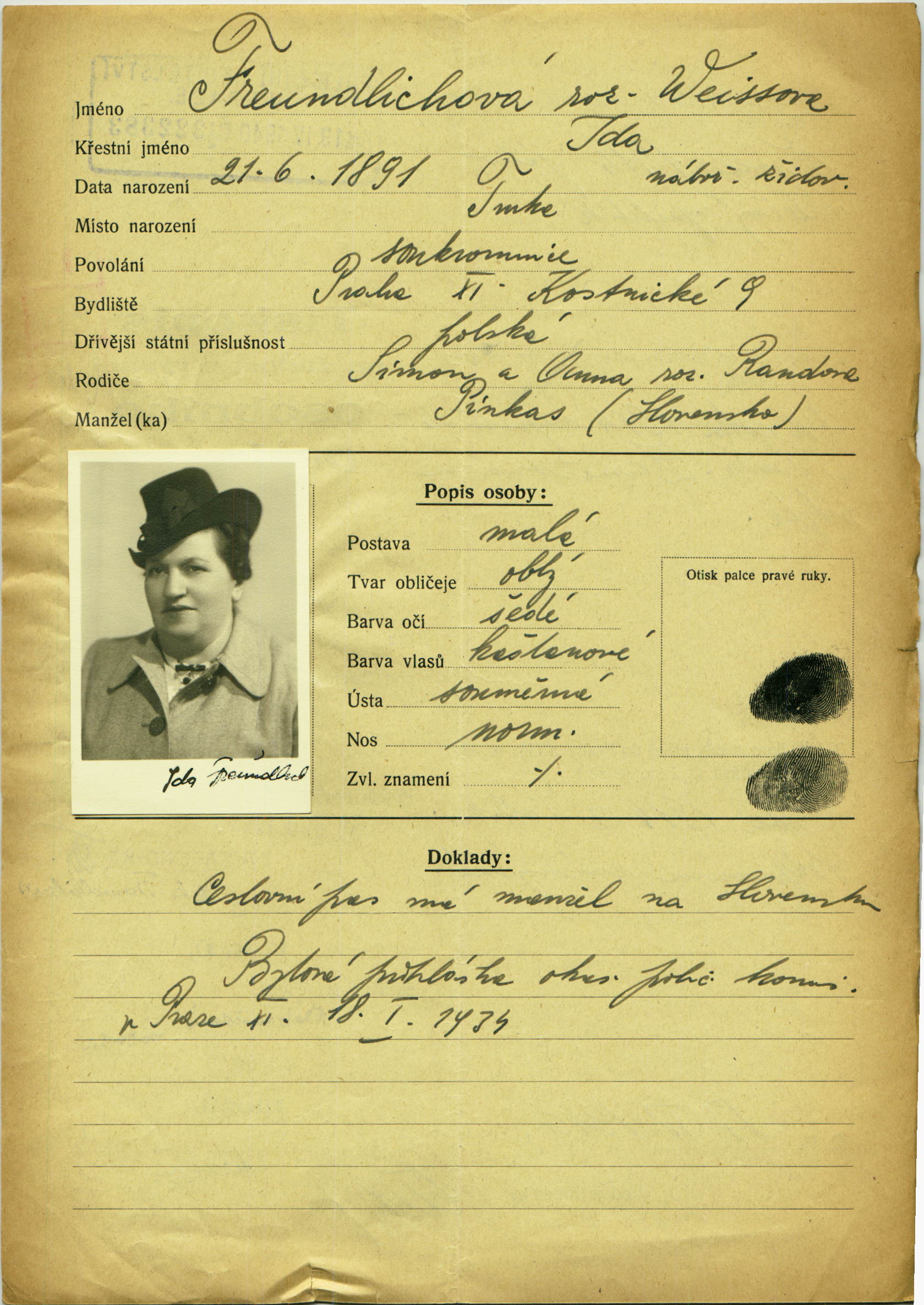 Freundlichová Ida: Identity card application