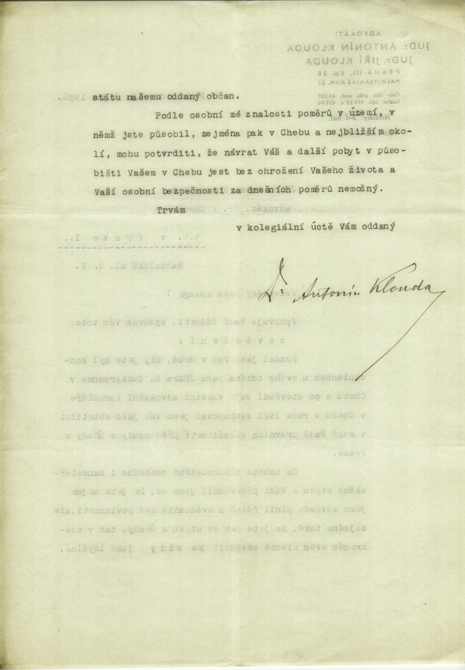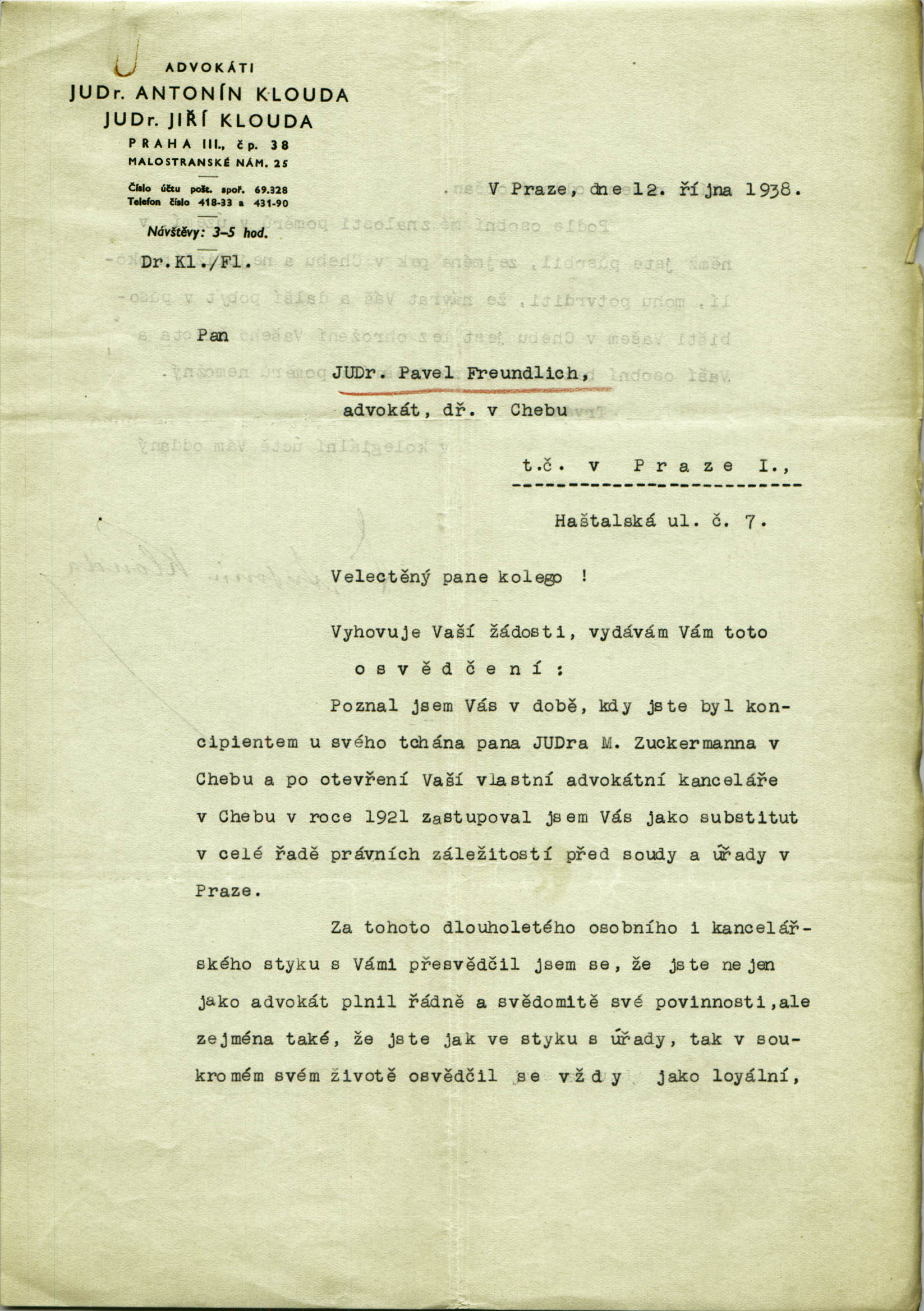 Freundlich Pavel: Přímluva k žádosti o povolení pobytu