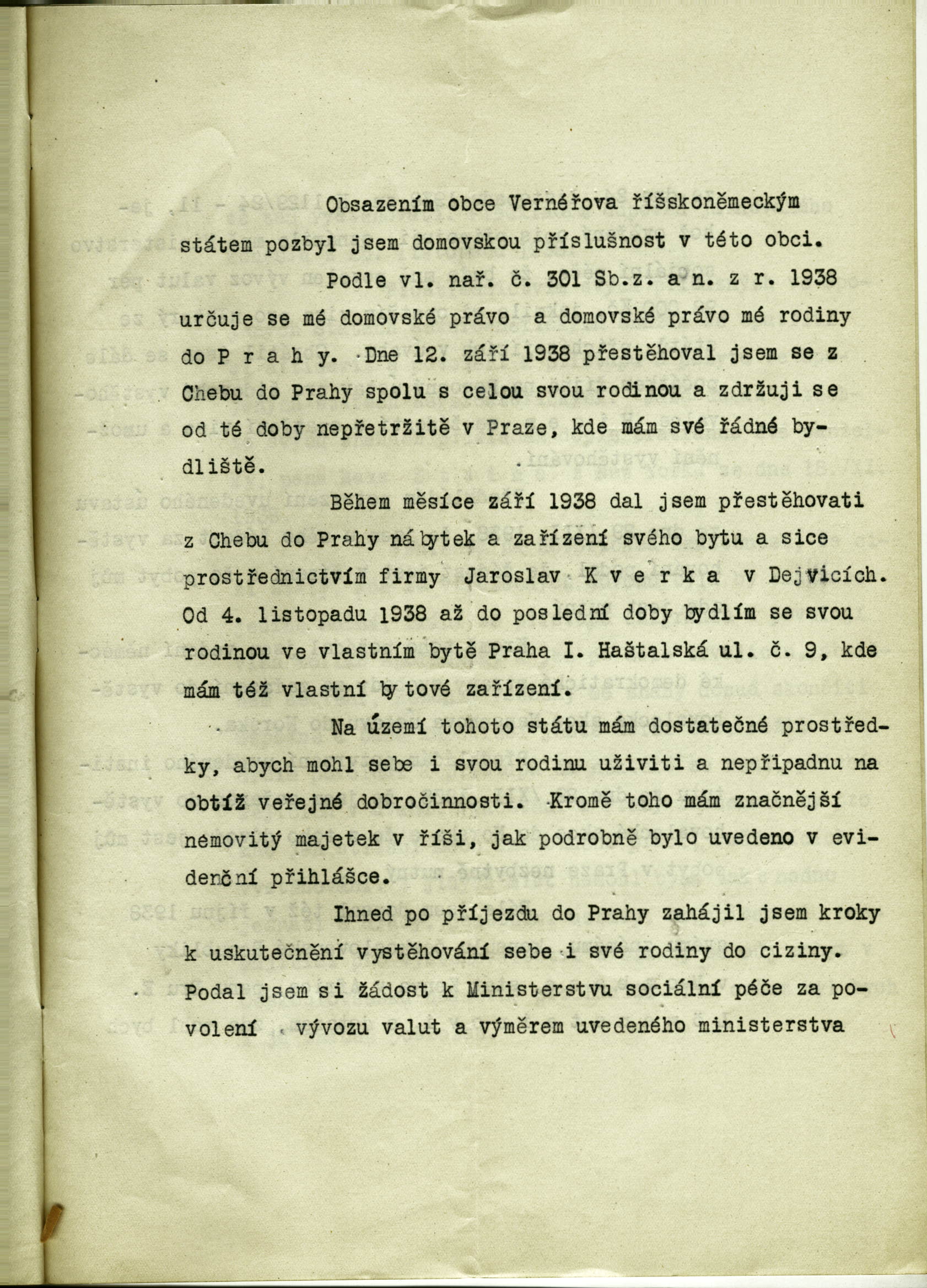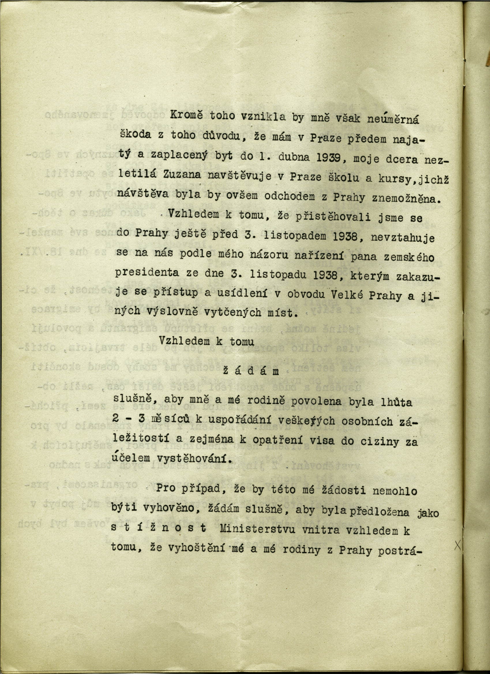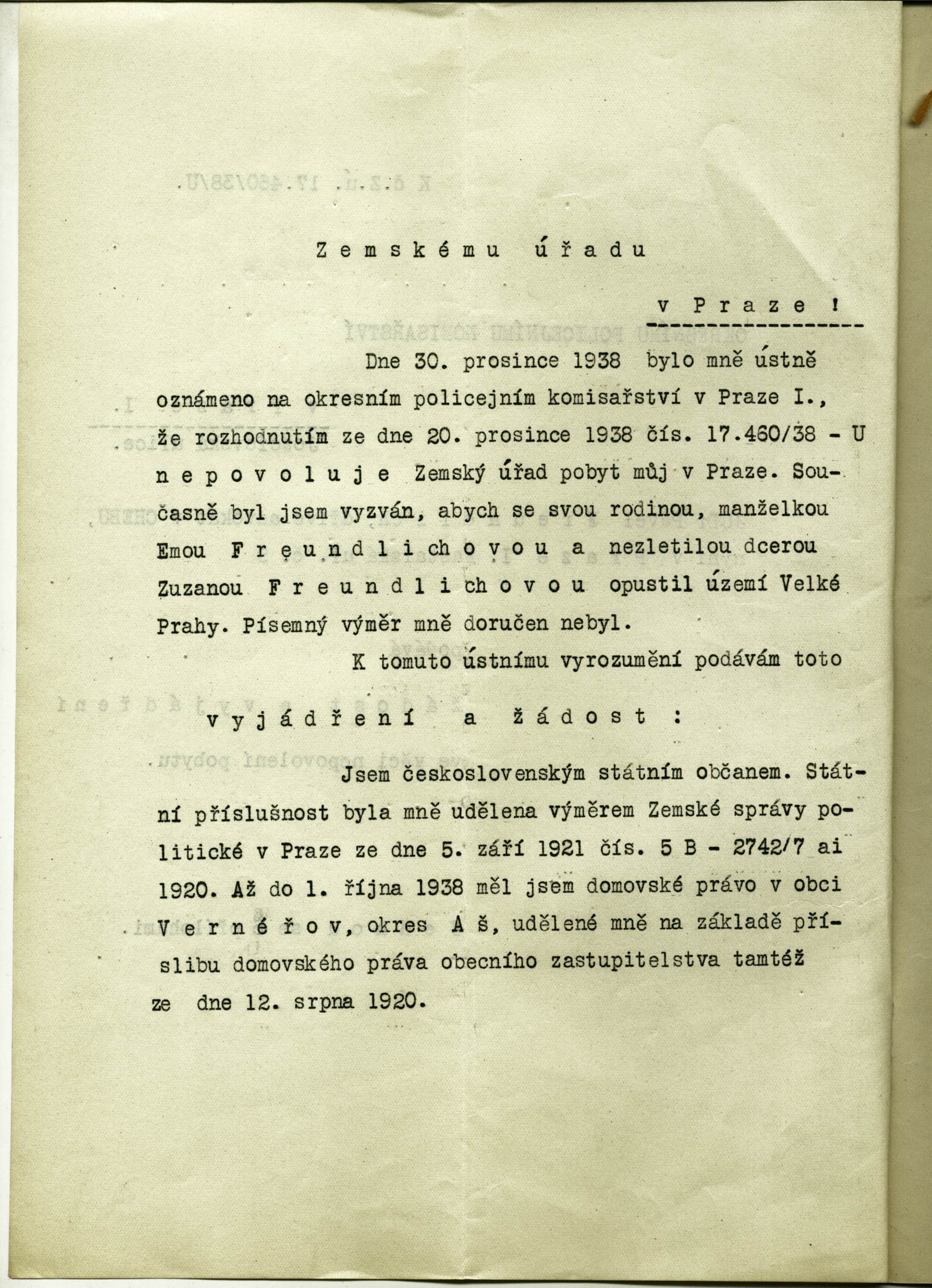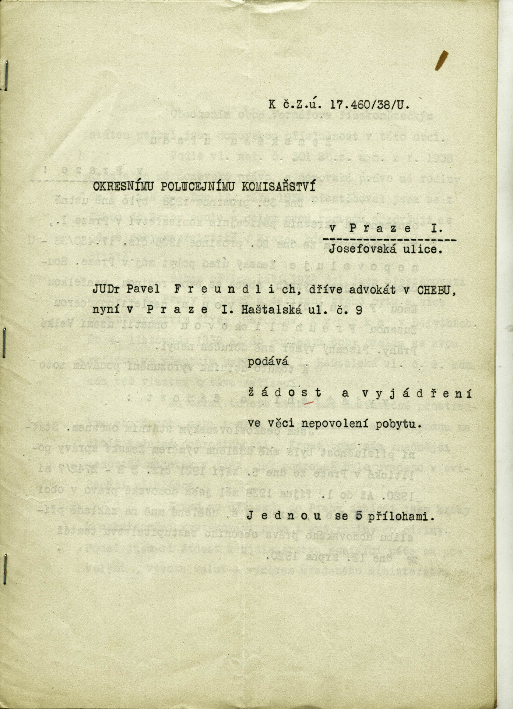 Freundlich Pavel: Žádost o vyjádření ve věci nepovolení pobytu