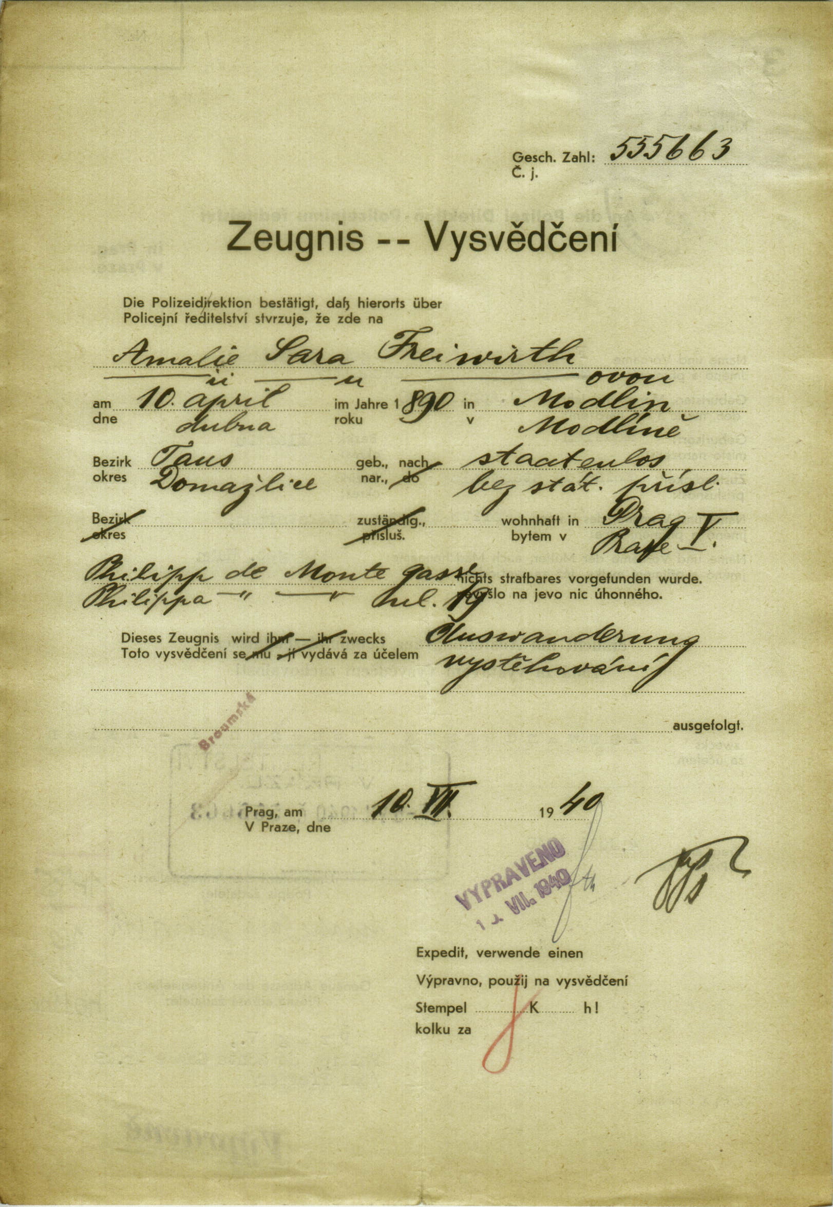 Freiwirthová Marie: Vysvědčení zachovalosti