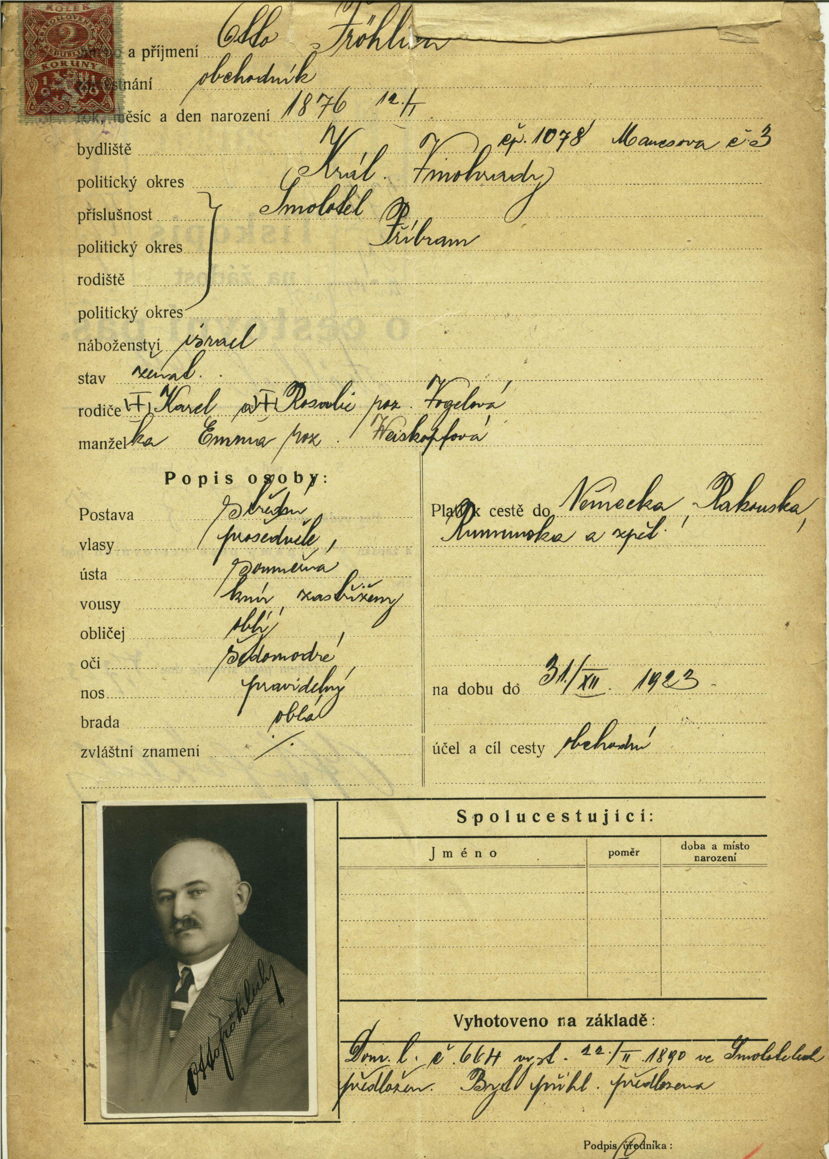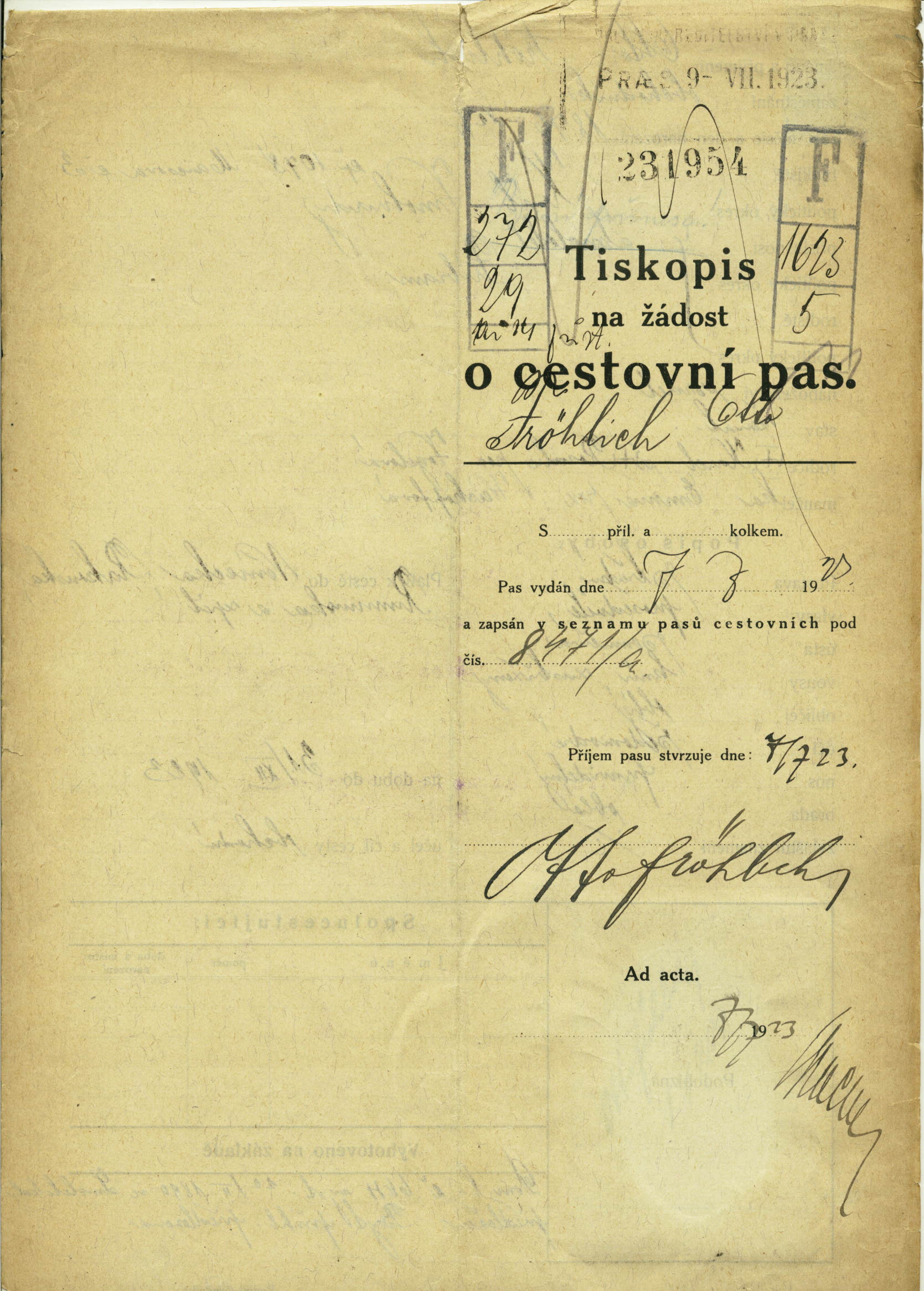 Fröhlich Ota: Passport application