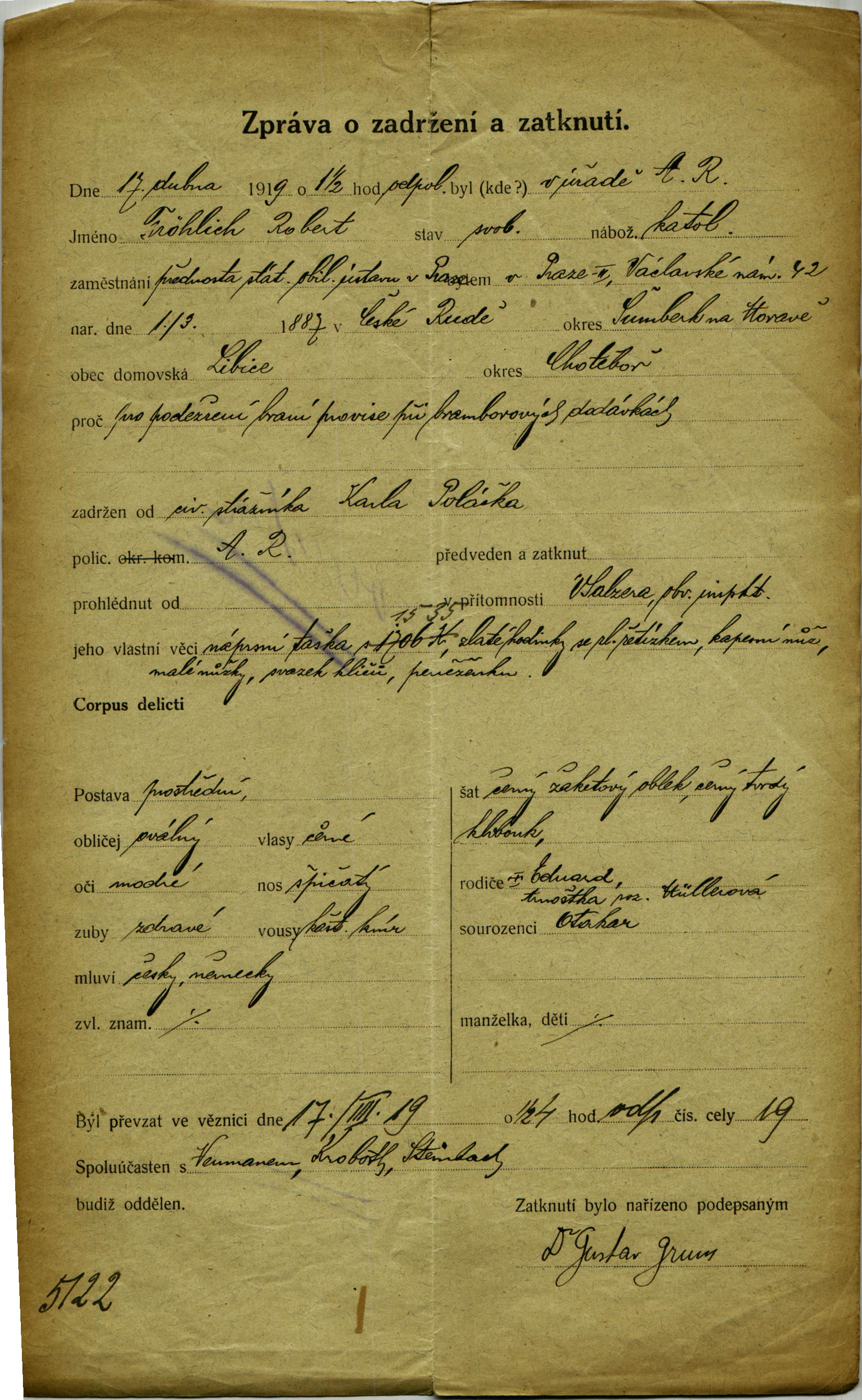 Fröhlich Robert: Arrest protocol
