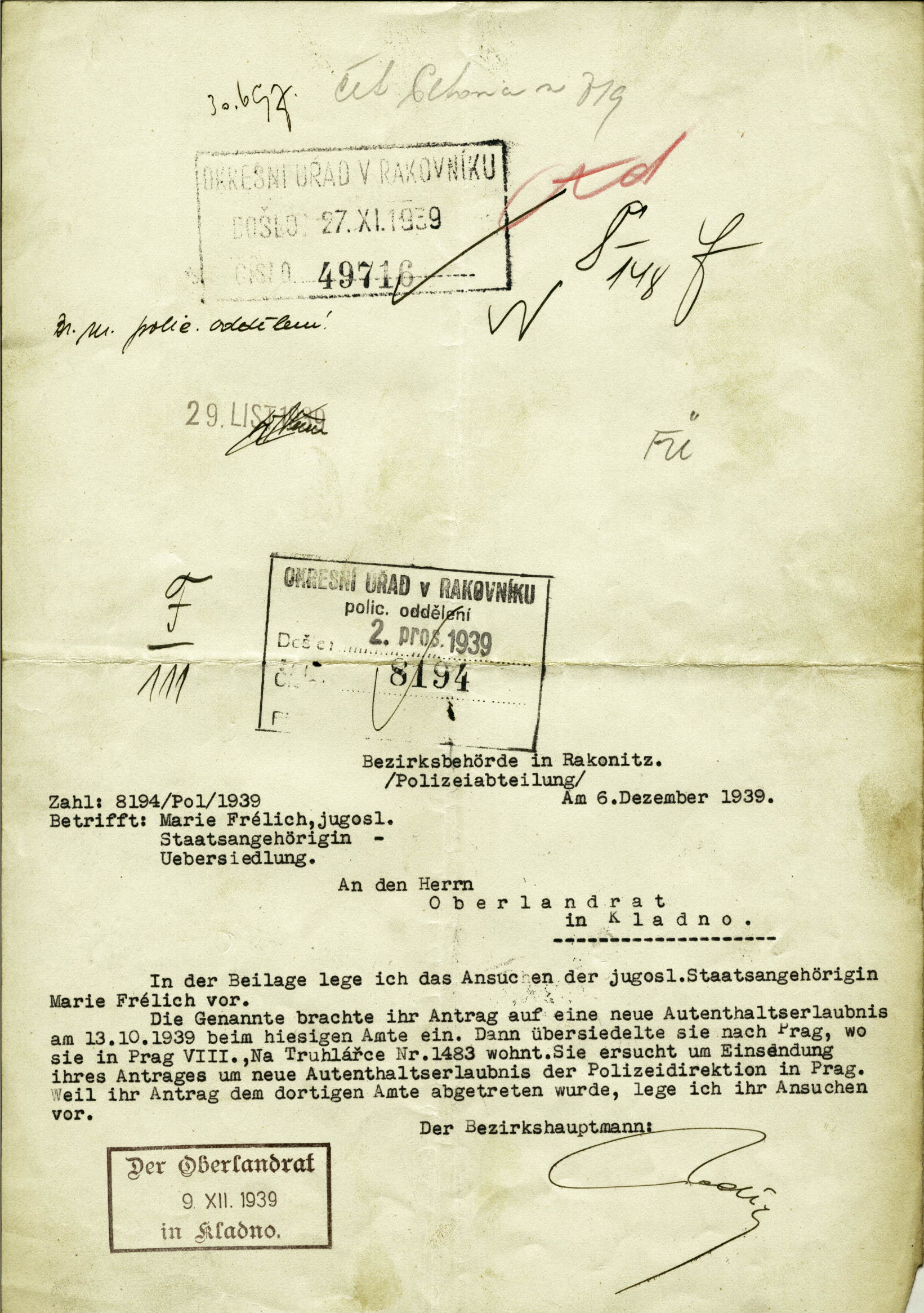 Fröhlichová Marie: Residence permit application