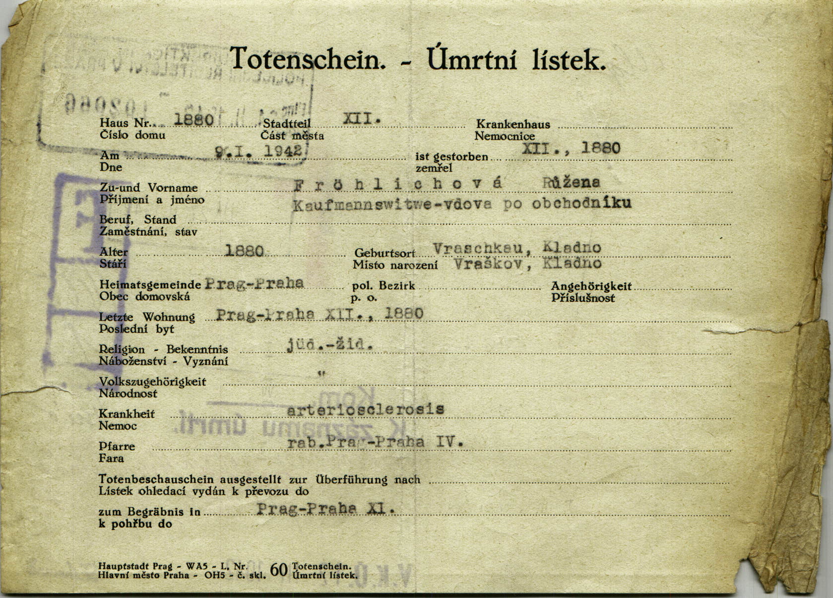This database contains the names and fates of those who were deported from the territory of today’s Czech Republic, be it their homeland or may they have been deported to the Theresienstadt ghetto before from different european countries. Further, it contains basic information on those men, women and children, most of whom were Roma or Sinti, who died as prisoners of the so-called „Gypsy camp I“ Lety u Písku.
