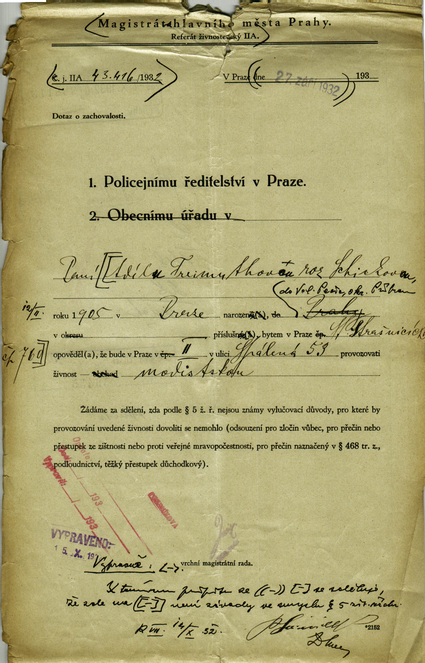 Freimuthová Adele: Probity investigation