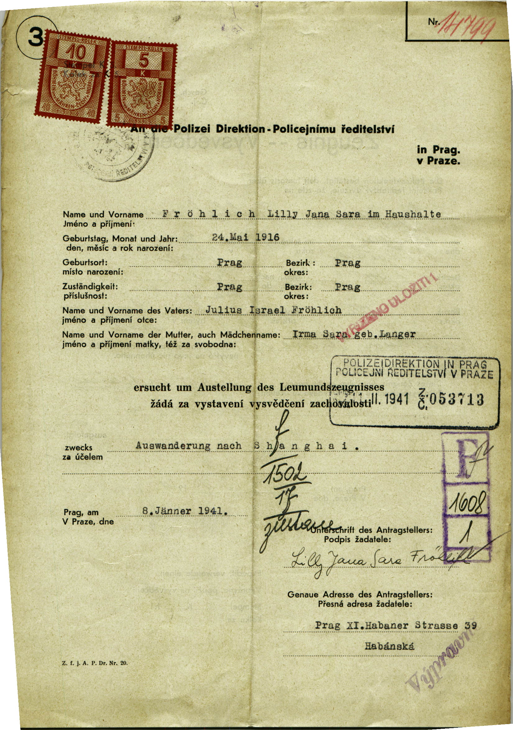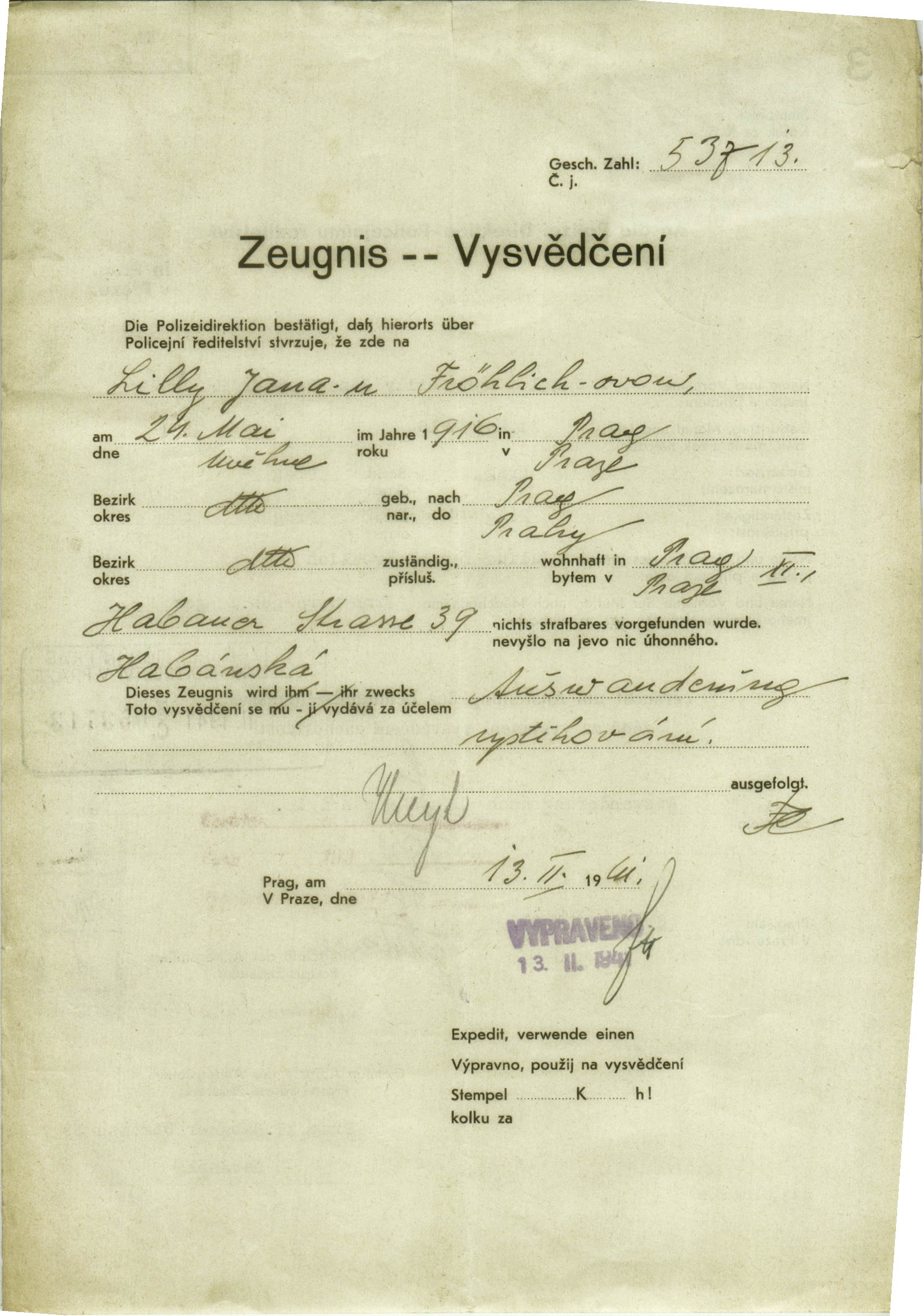 National archives Prague > Police Directorate Prague > 1941-1950 > F > Fröhlichová Lily