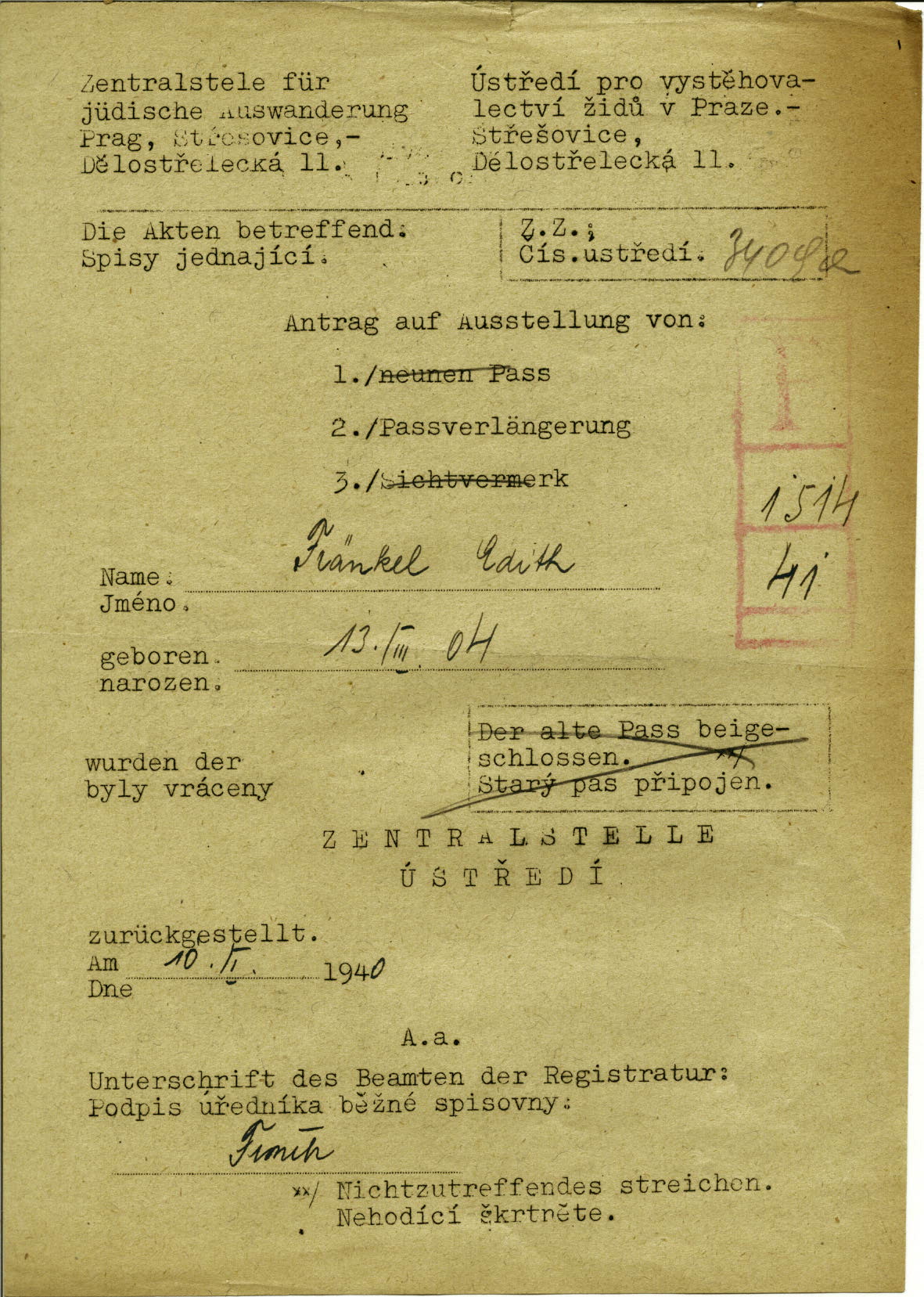 Fränkelová Edita: Note about returning of file to Zentralstelle