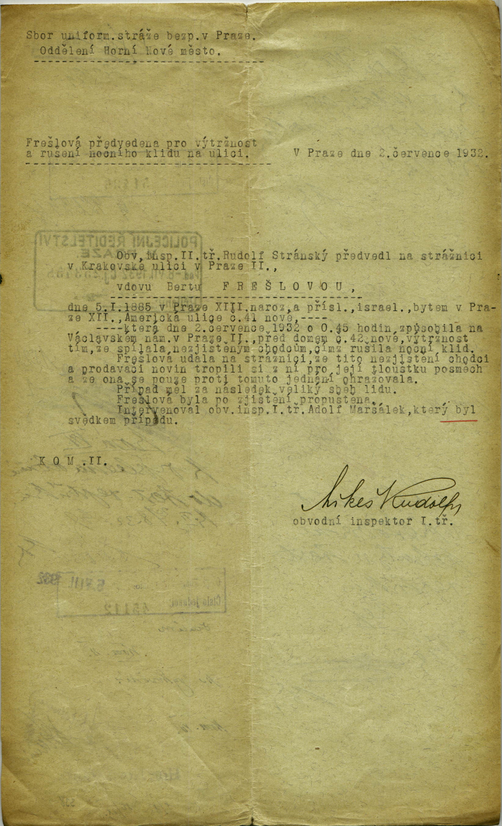 Freschlová Berta: Zpráva o přestupku