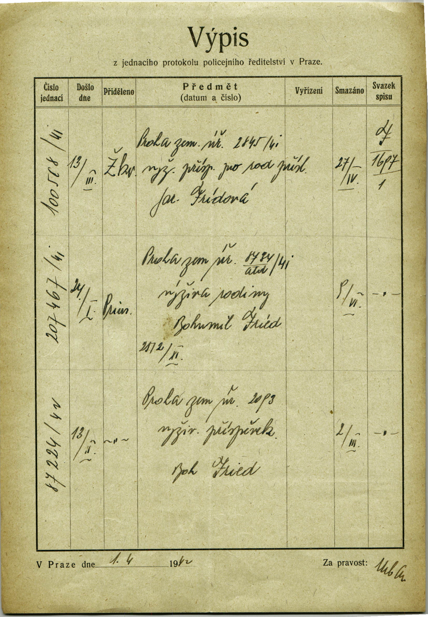 National archives Prague > Police Directorate Prague > 1941-1950 > F > Fried Bohumil