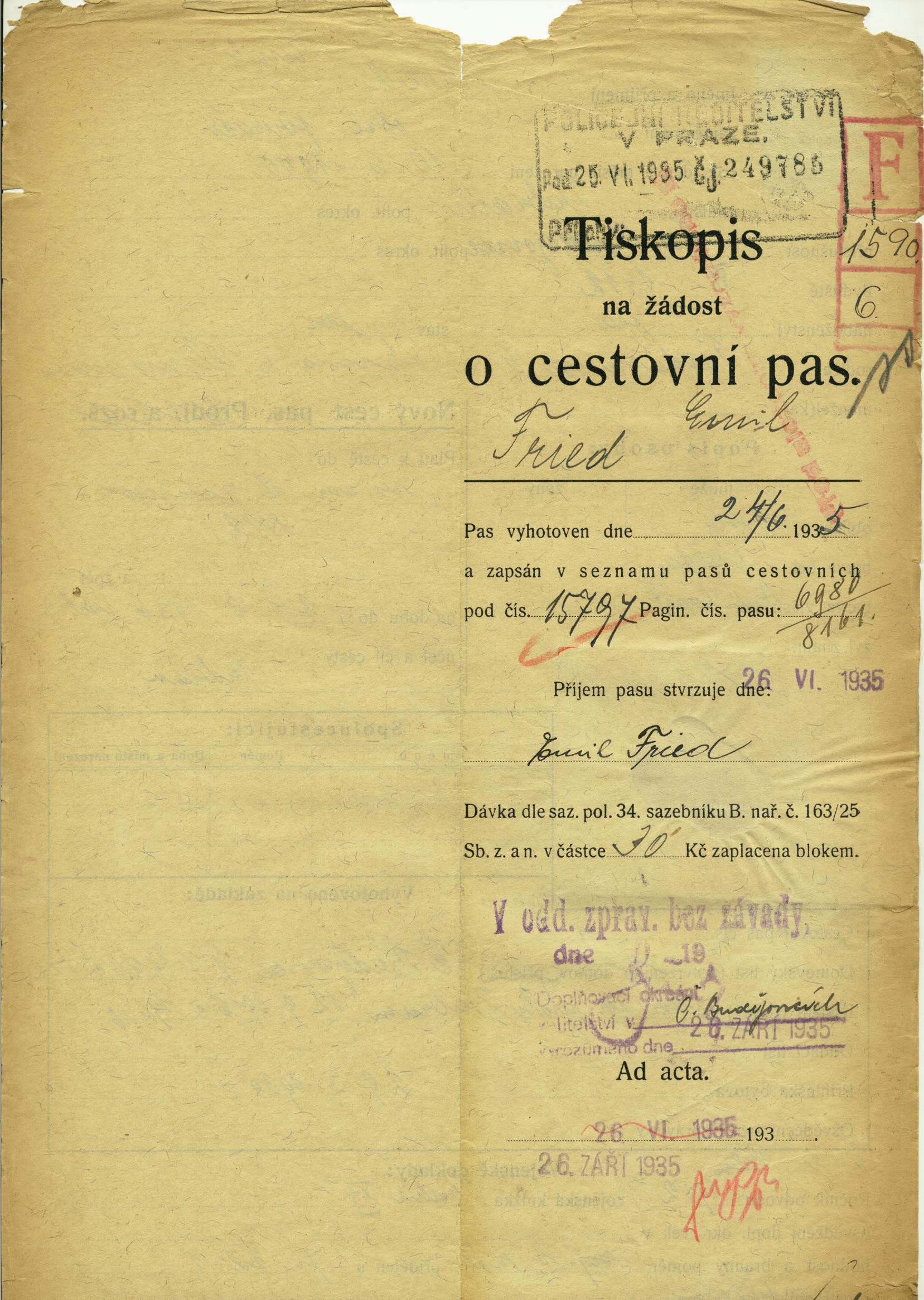 National archives Prague > Police Directorate Prague > 1941-1950 > F > Fried Emil