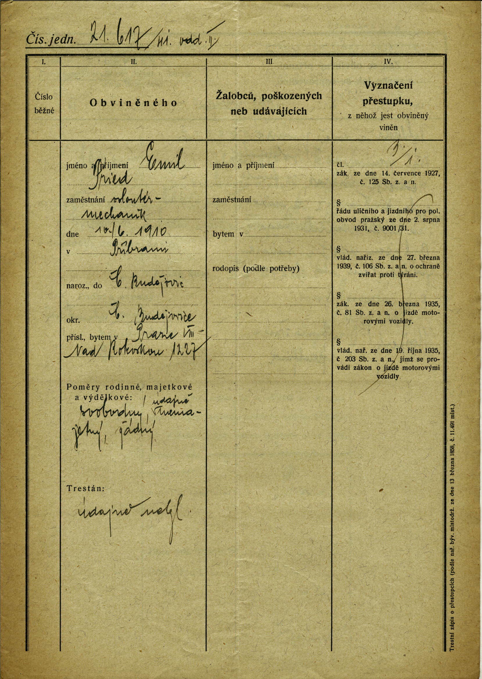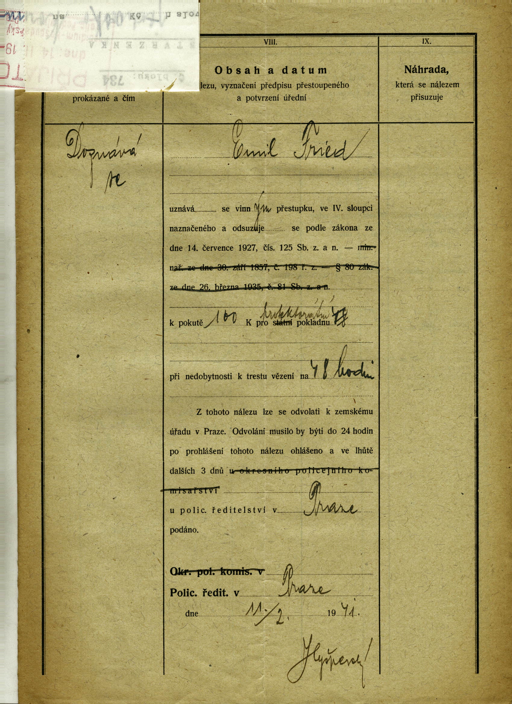 National archives Prague > Police Directorate Prague > 1941-1950 > F > Fried Emil