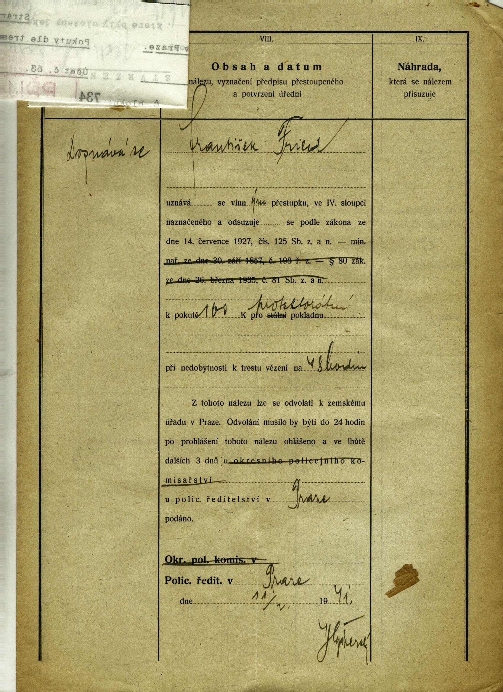 National archives Prague > Police Directorate Prague > 1941-1950 > F > Fried František