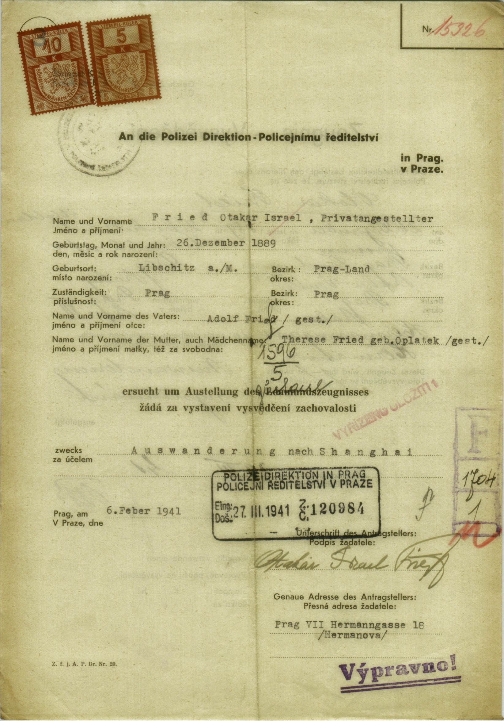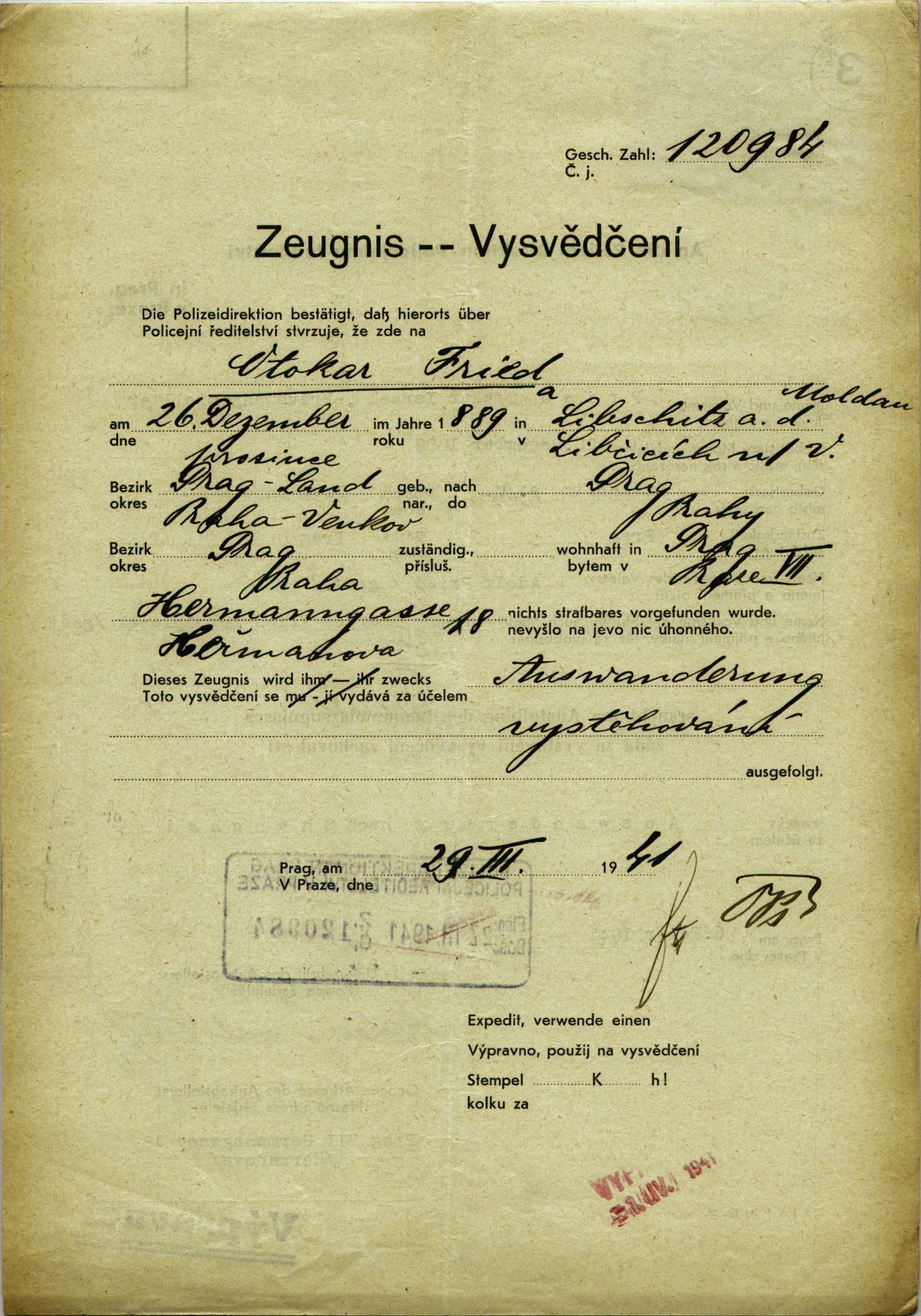 National archives Prague > Police Directorate Prague > 1941-1950 > F > Fried Otakar