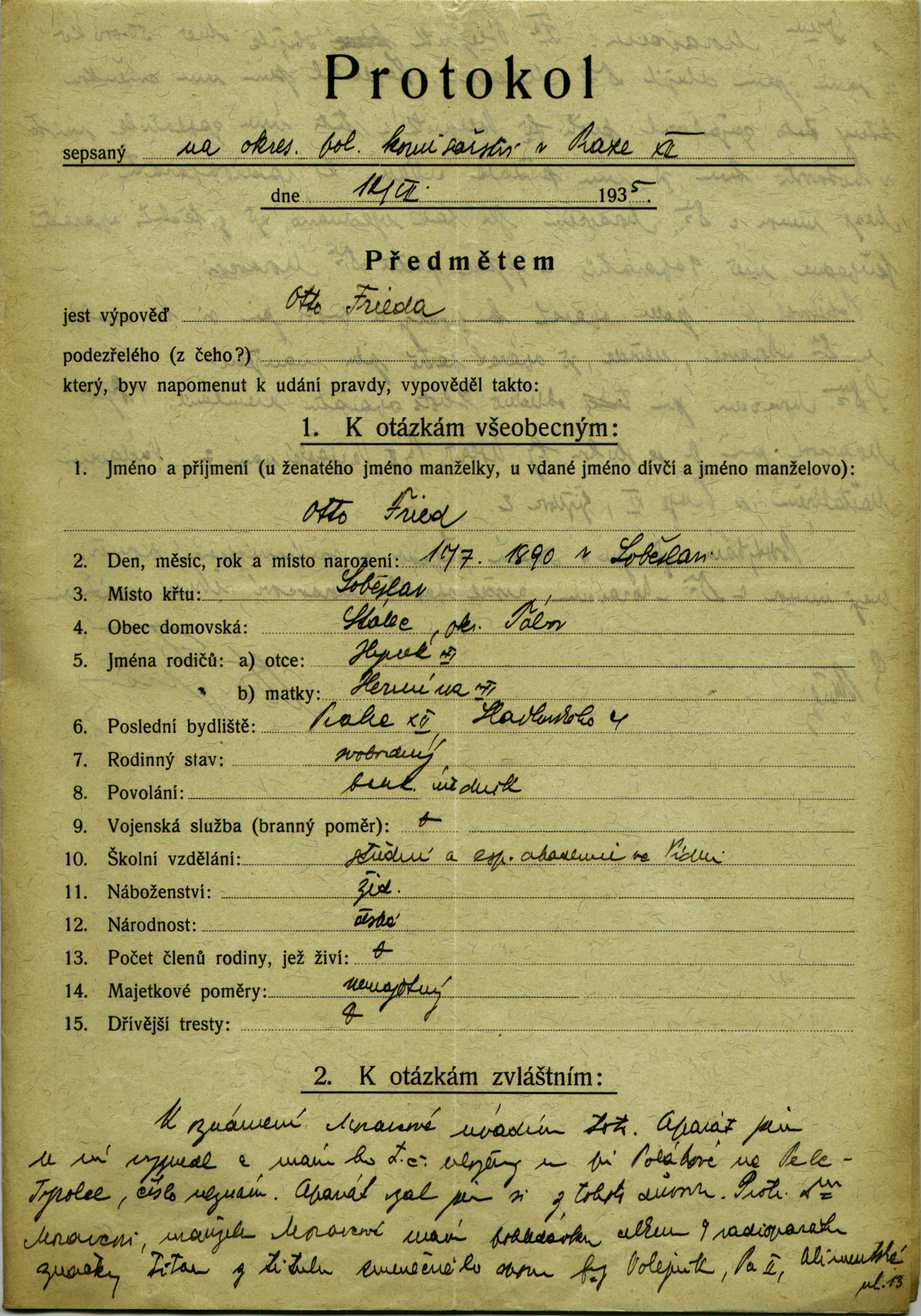 Fried Otto: Protokol o výslechu