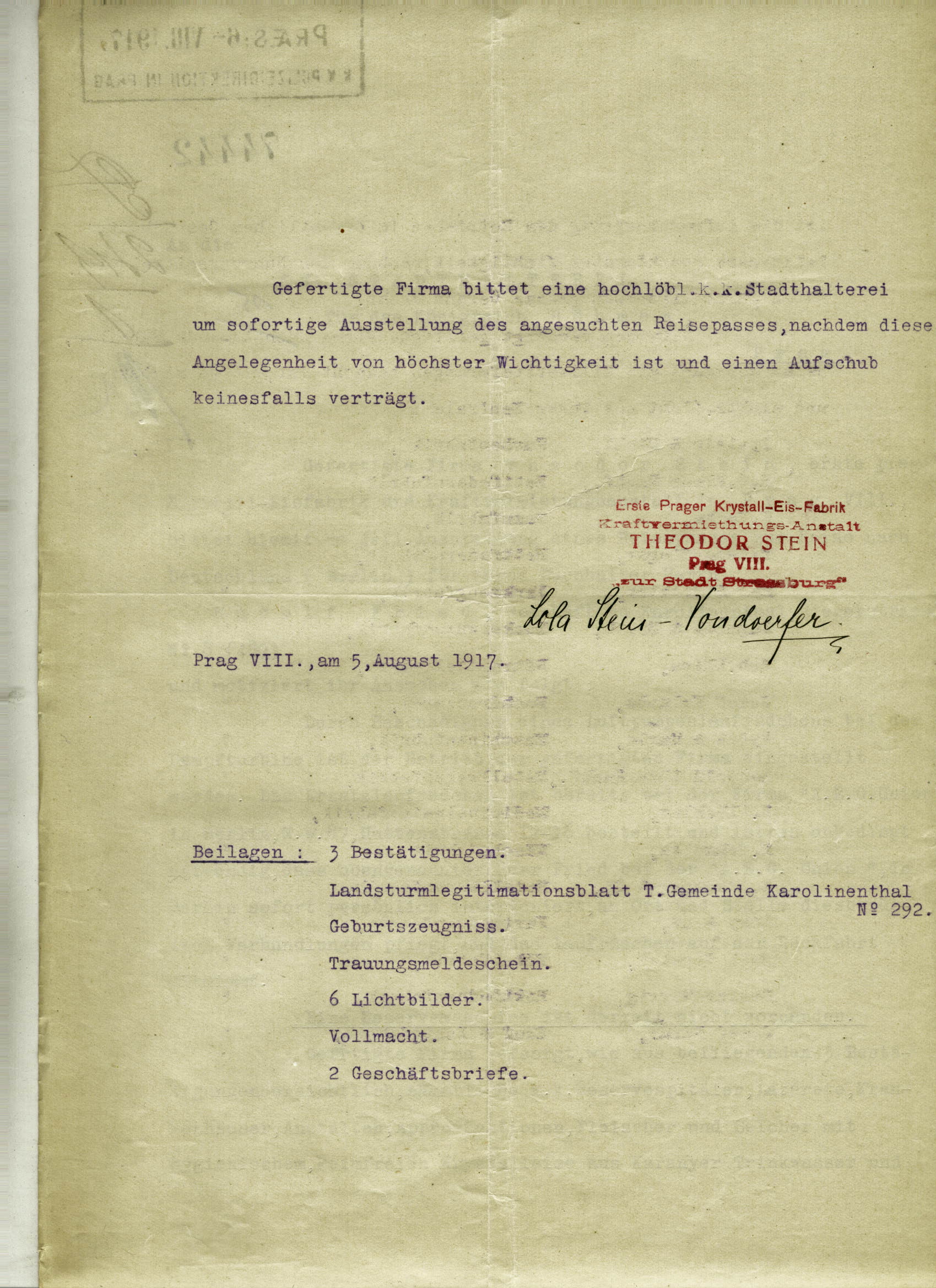 For publication purposes, contact the National Archives in Prague, where the original document is located. The document was digitized by the Terezín Initiative Institute, the Terezín Album project.