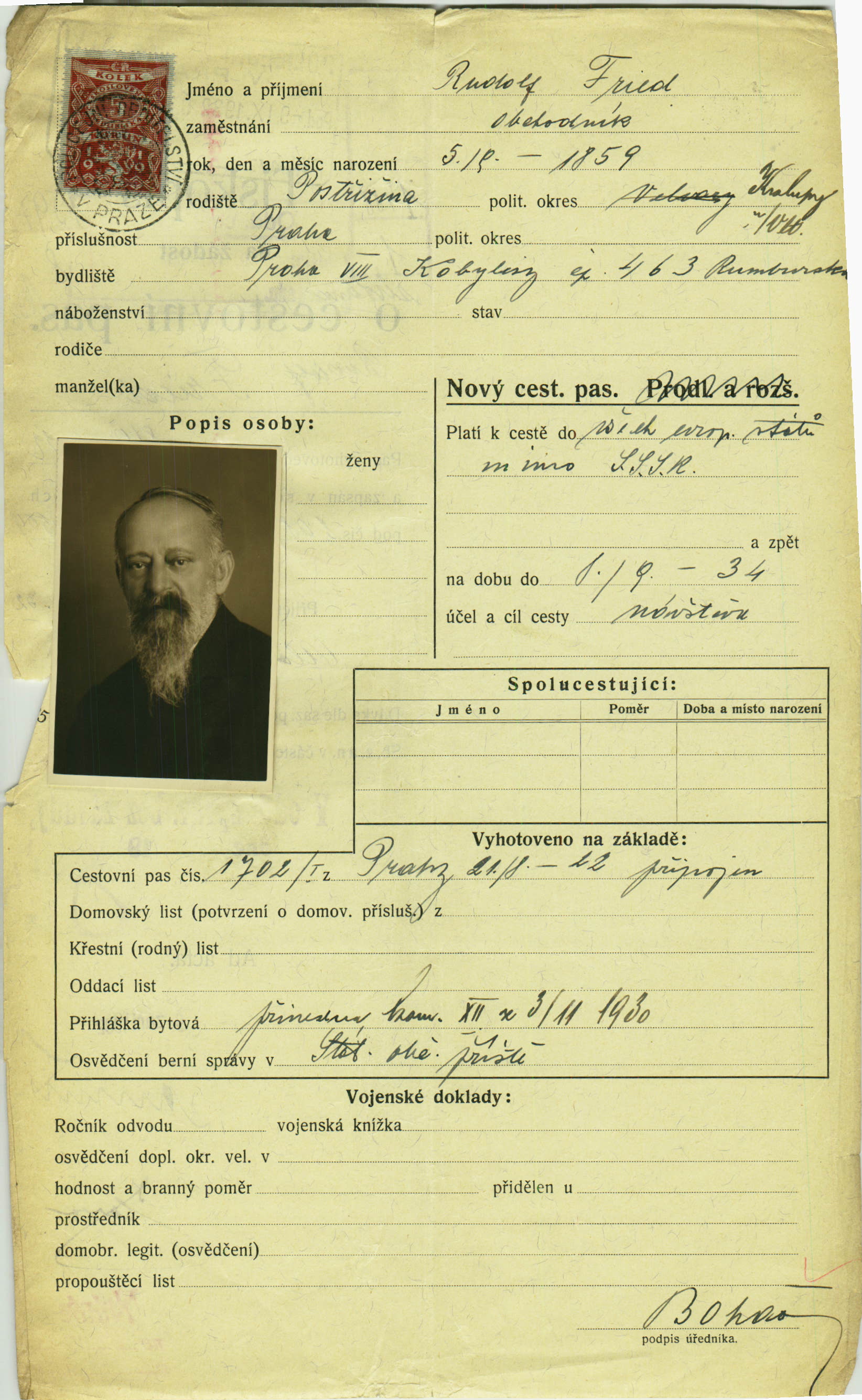Fried Rudolf: Passport application