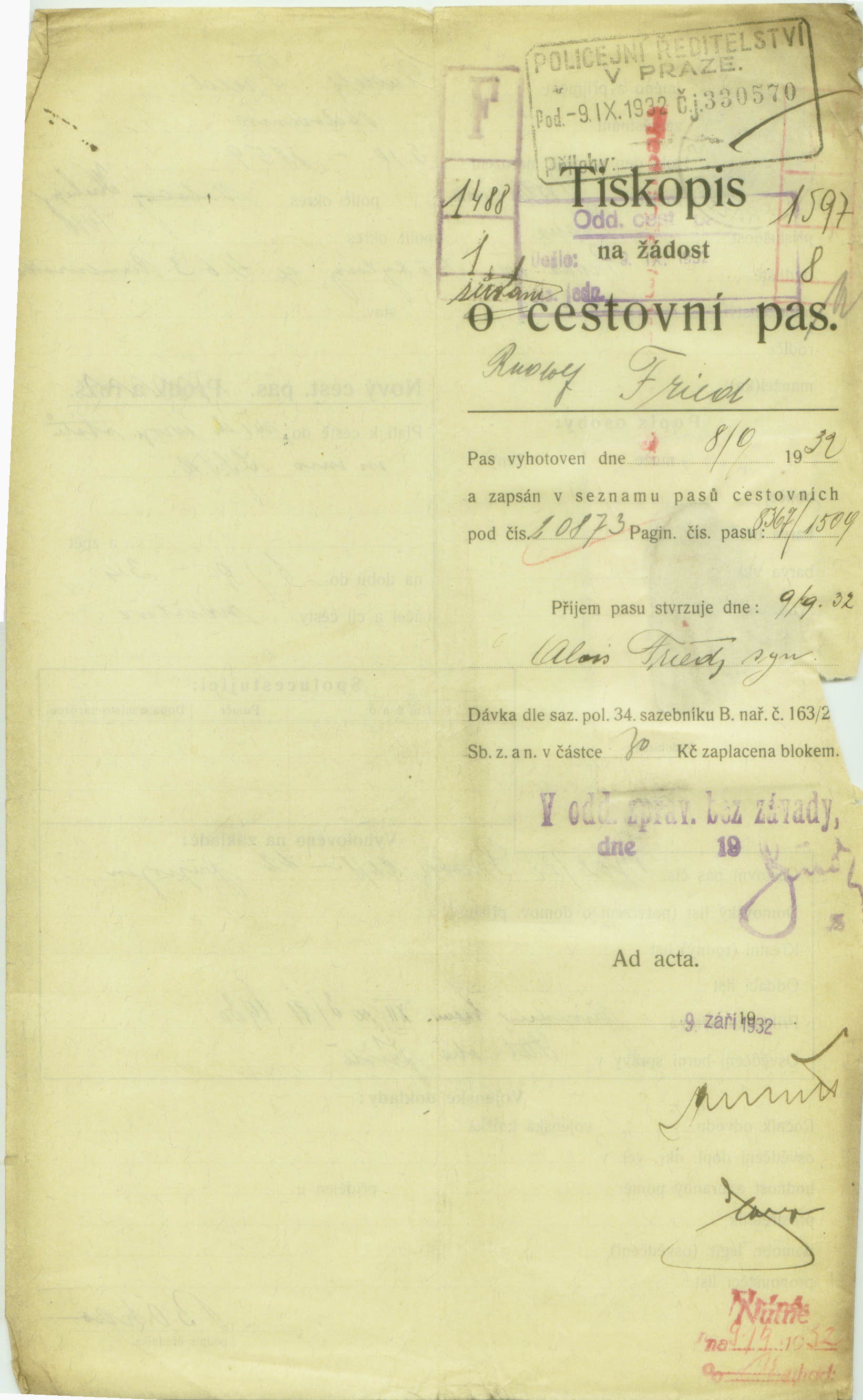 National archives Prague > Police Directorate Prague > 1941-1950 > F > Fried Rudolf