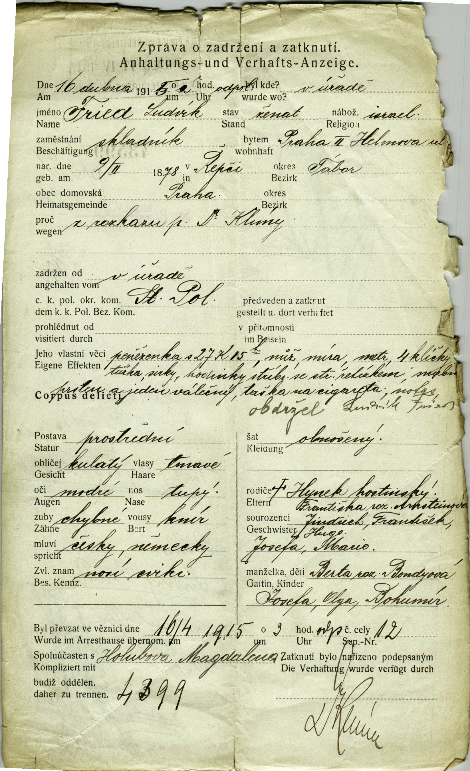 National archives Prague > Police Directorate Prague > 1941-1950 > F > Fried Ludvík