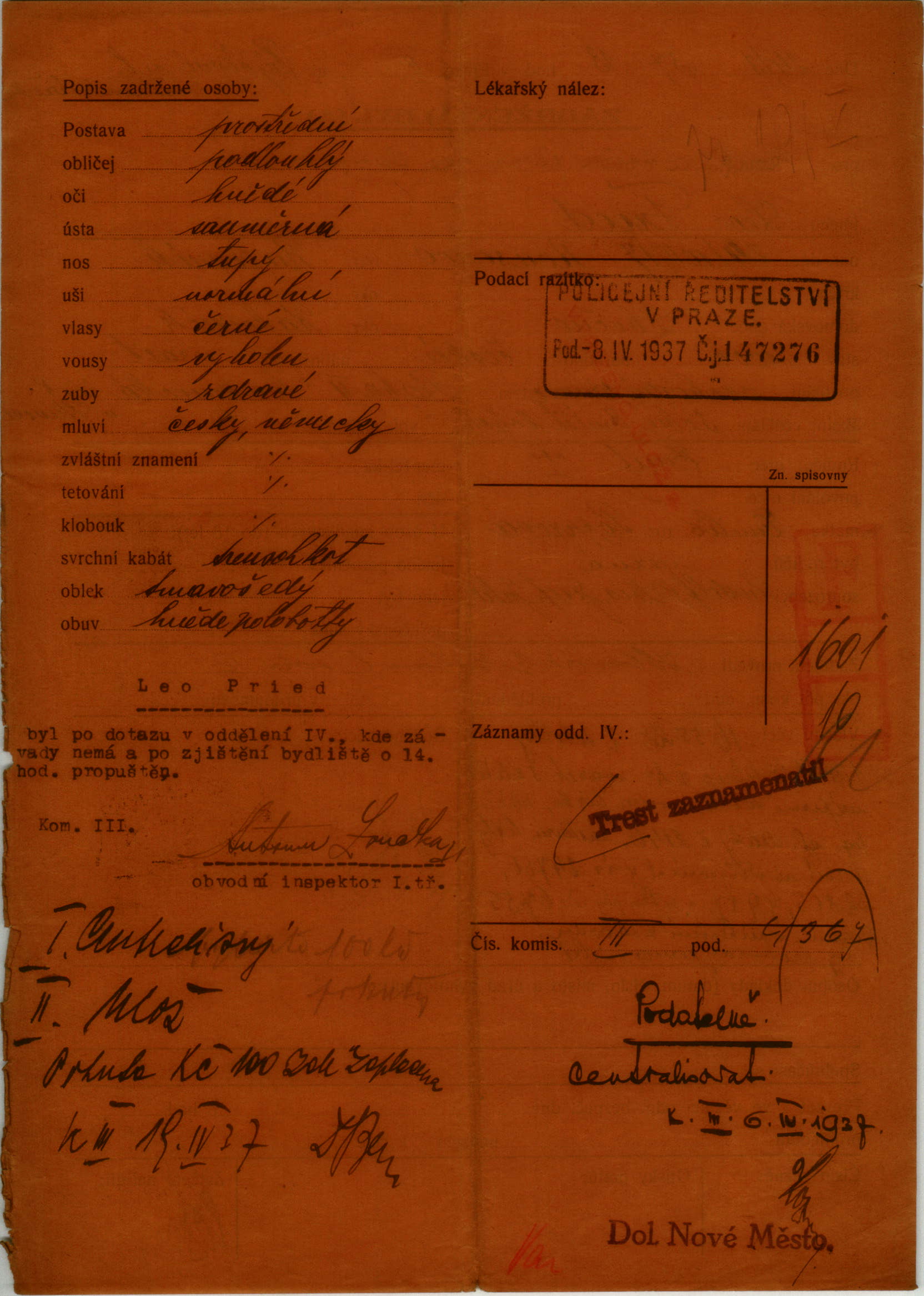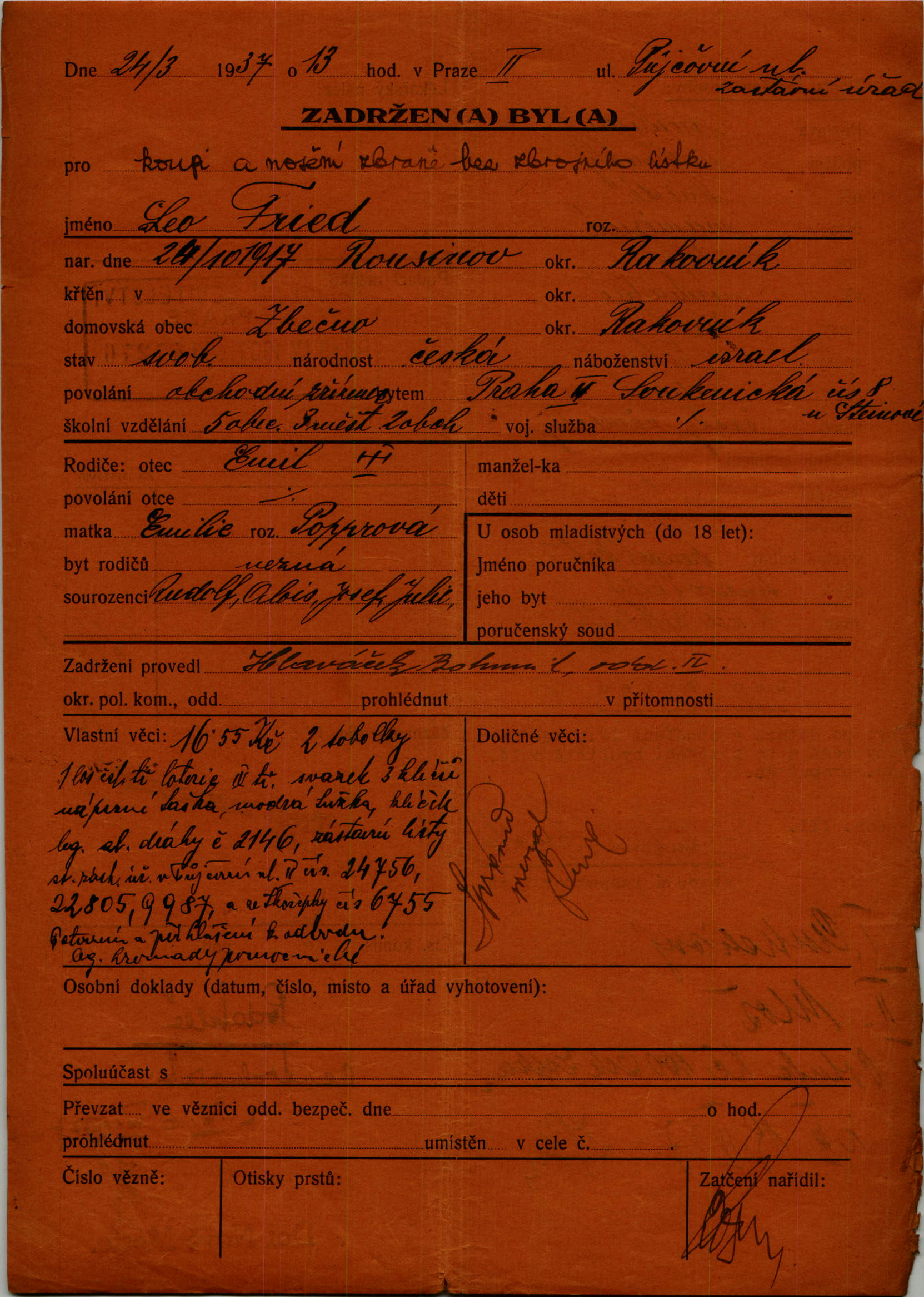 National archives Prague > Police Directorate Prague > 1941-1950 > F > Fried Leo