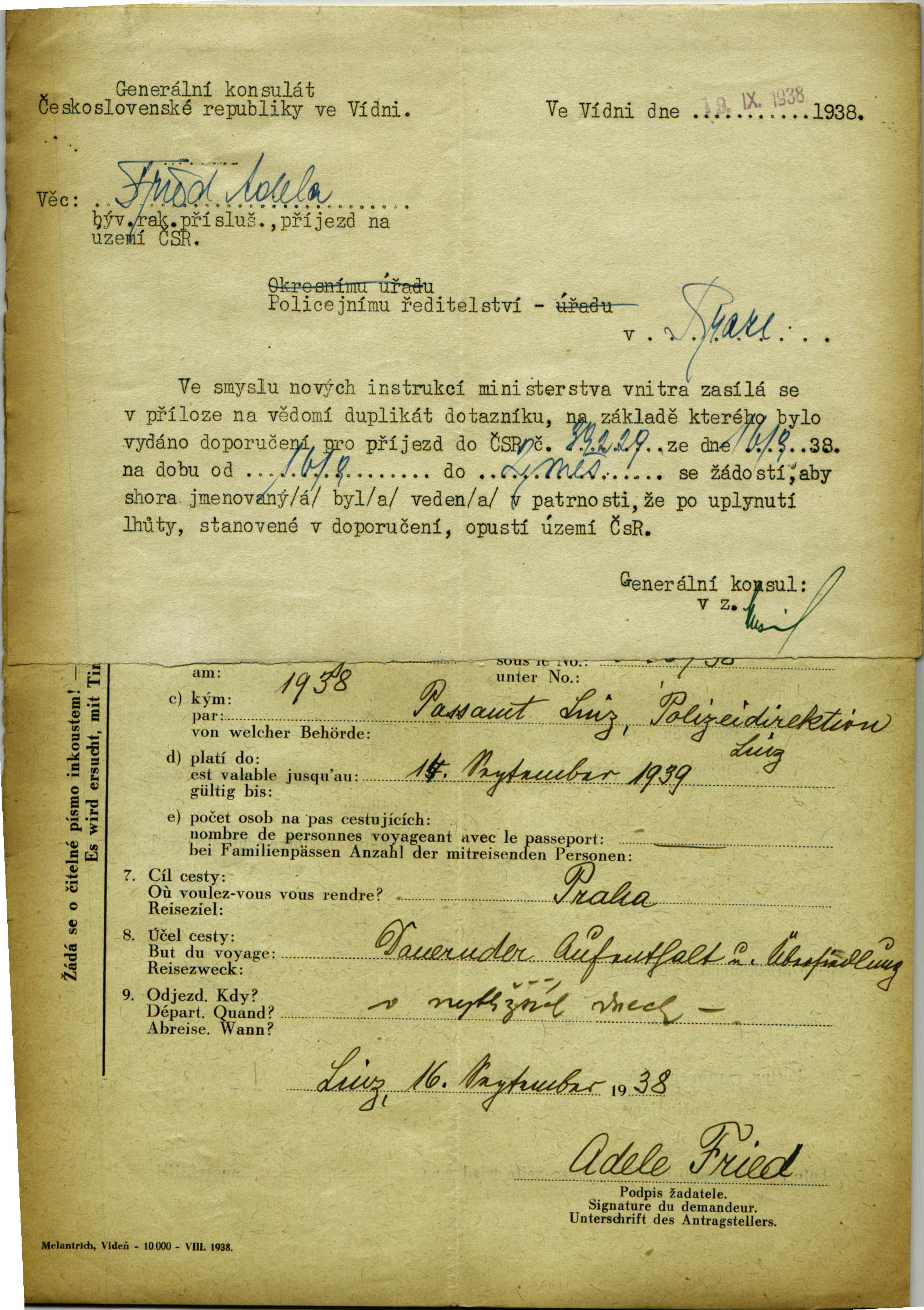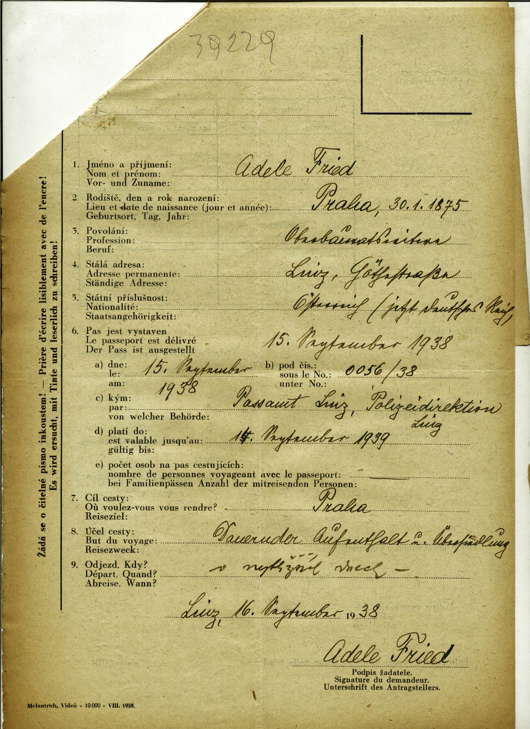 Friedová Adéla: Report on a refugee from Austria