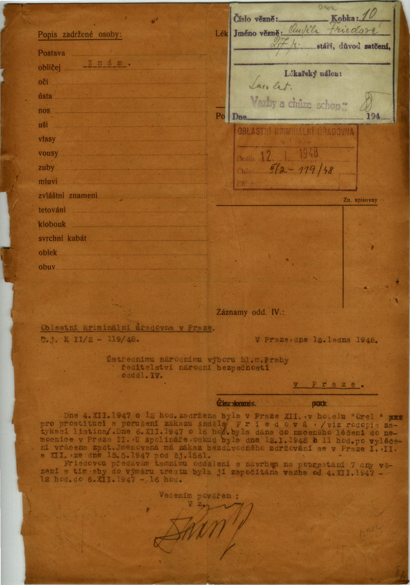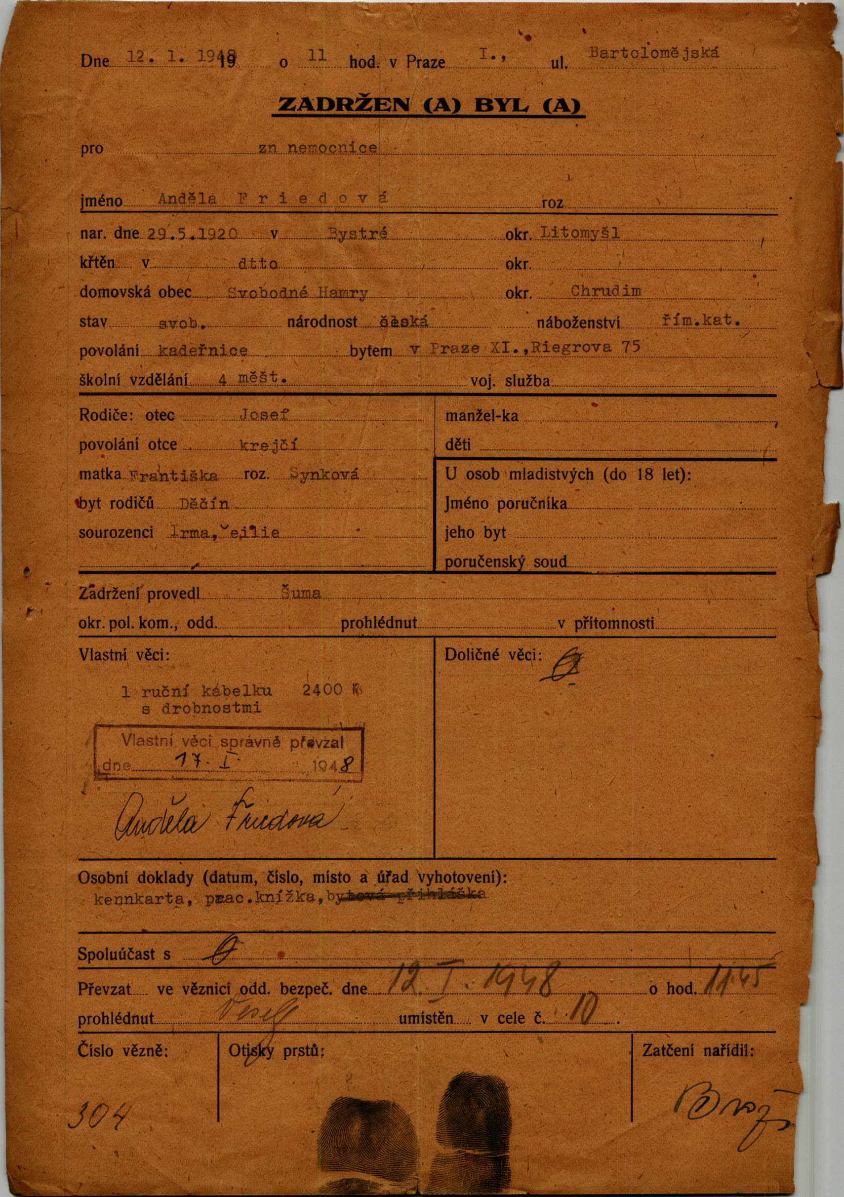 Friedova Angela: Arrest protocol