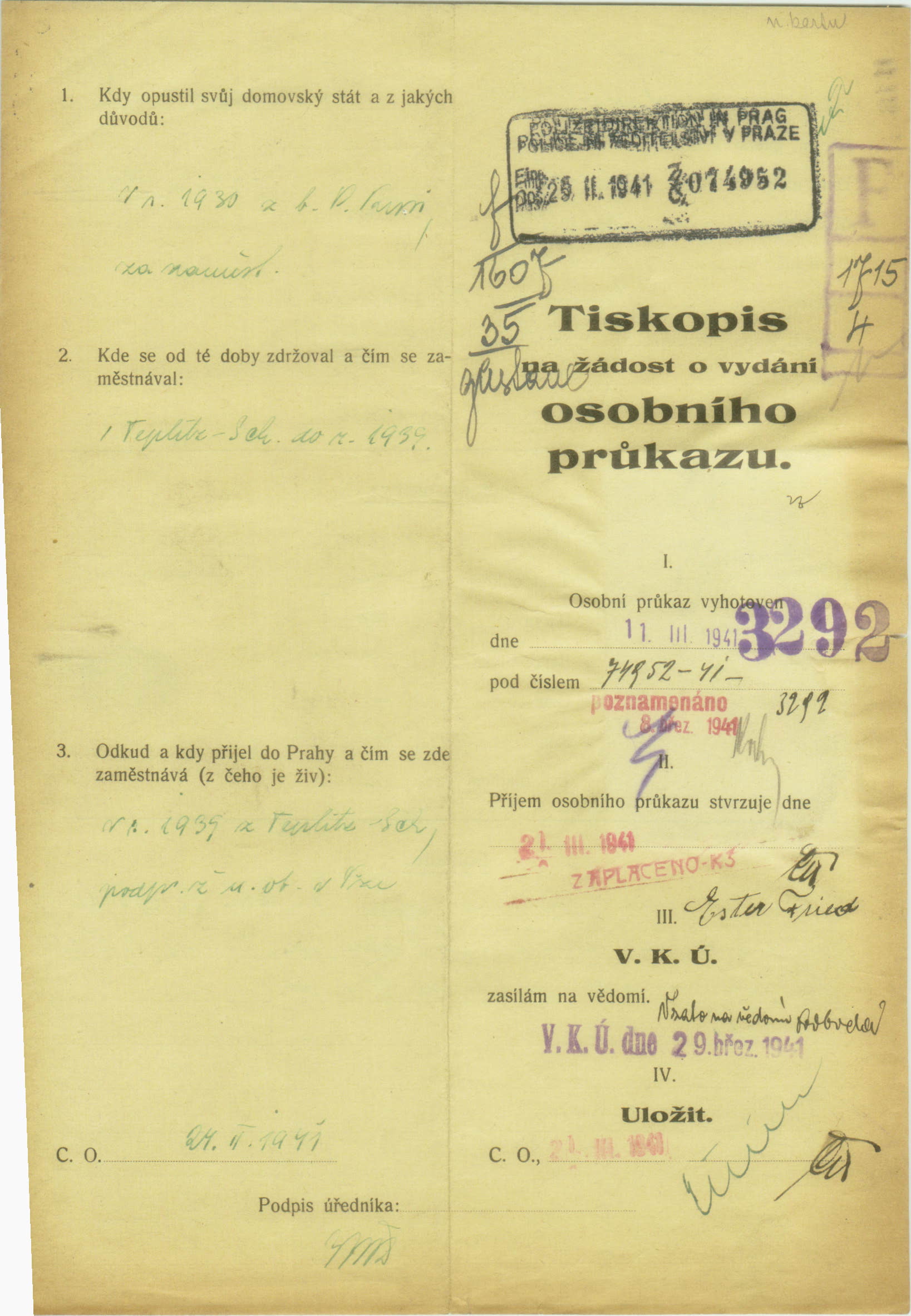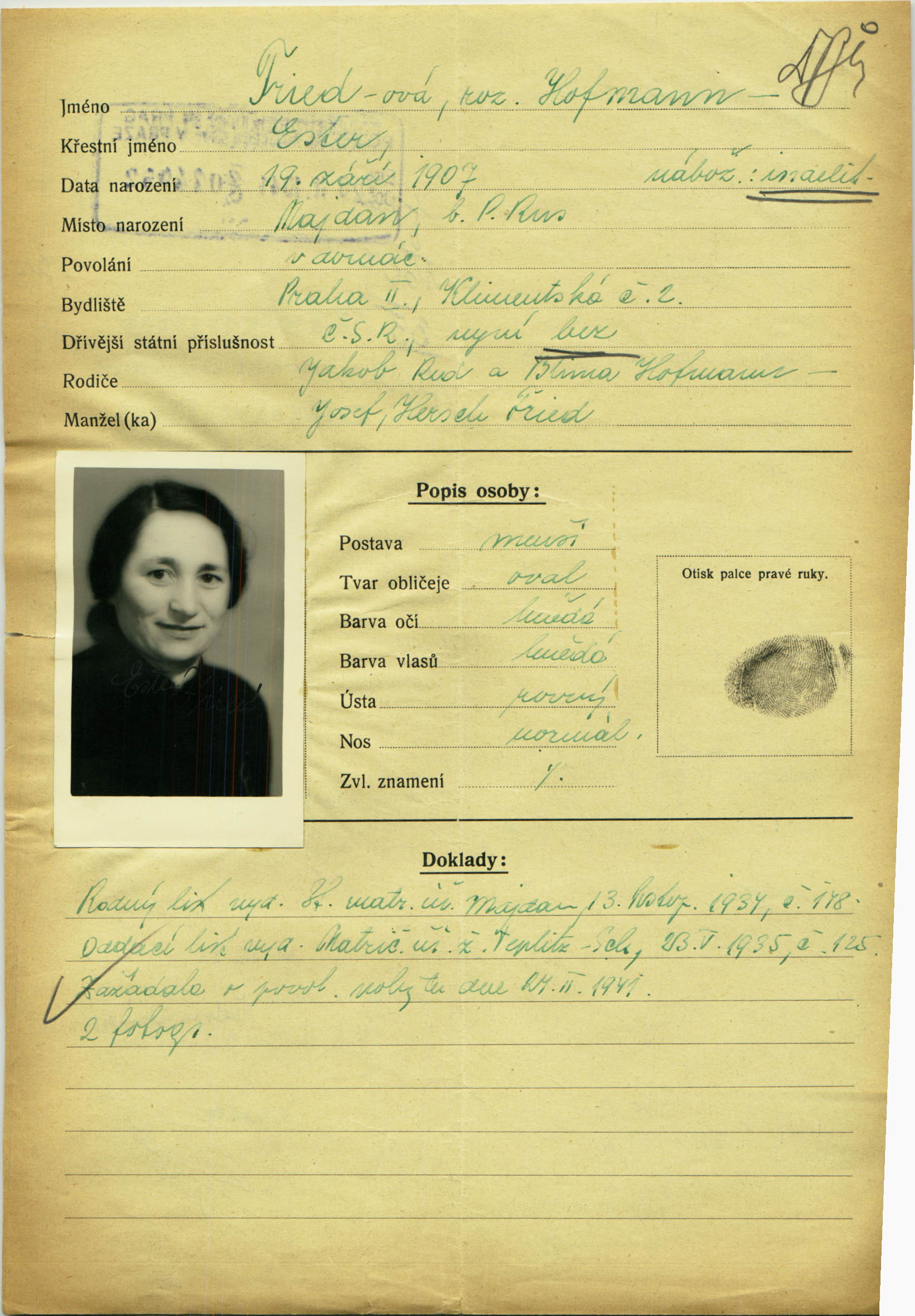 National archives Prague > Police Directorate Prague > 1941-1950 > F > Friedová Esther