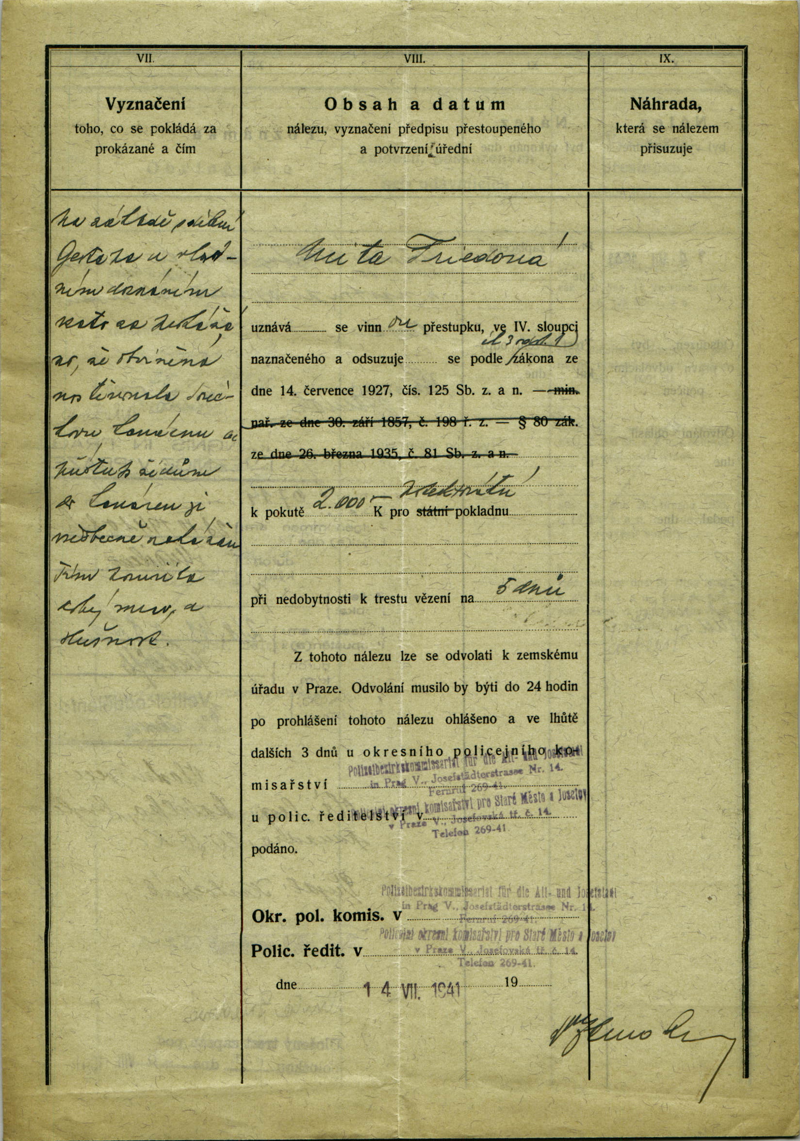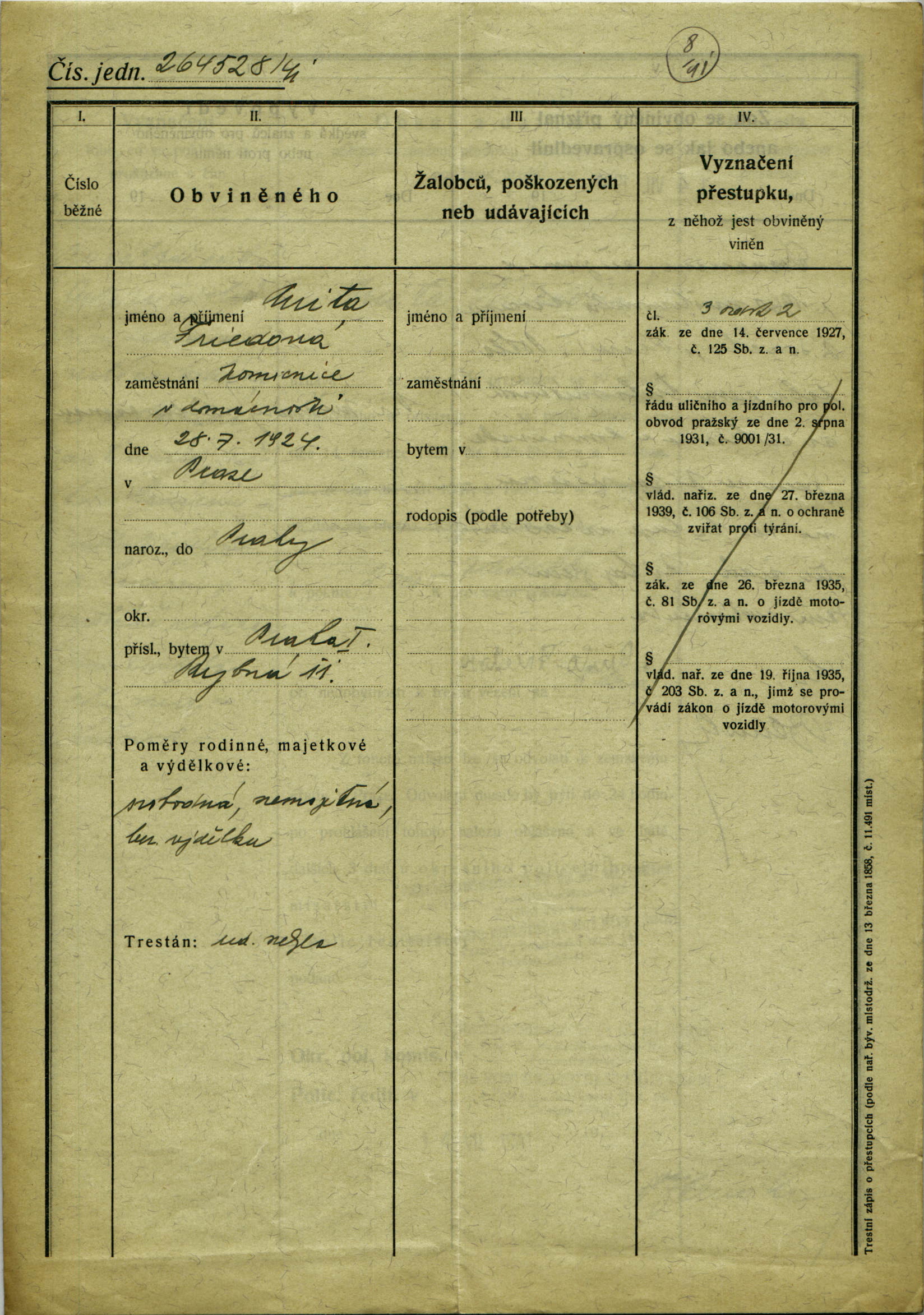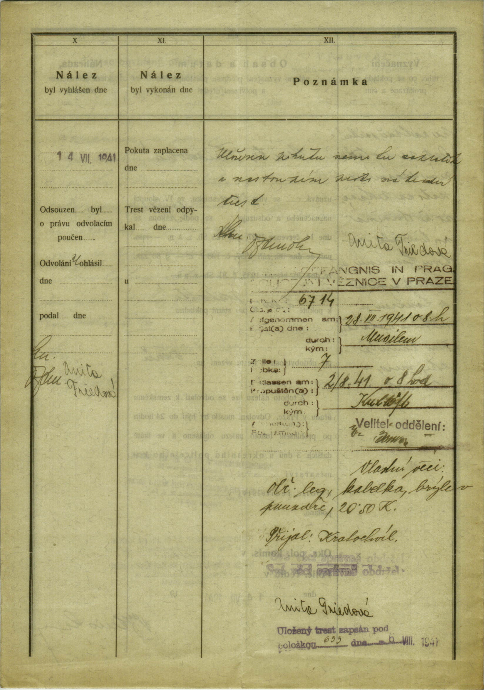 National archives Prague > Police Directorate Prague > 1941-1950 > F > Friedová Anita