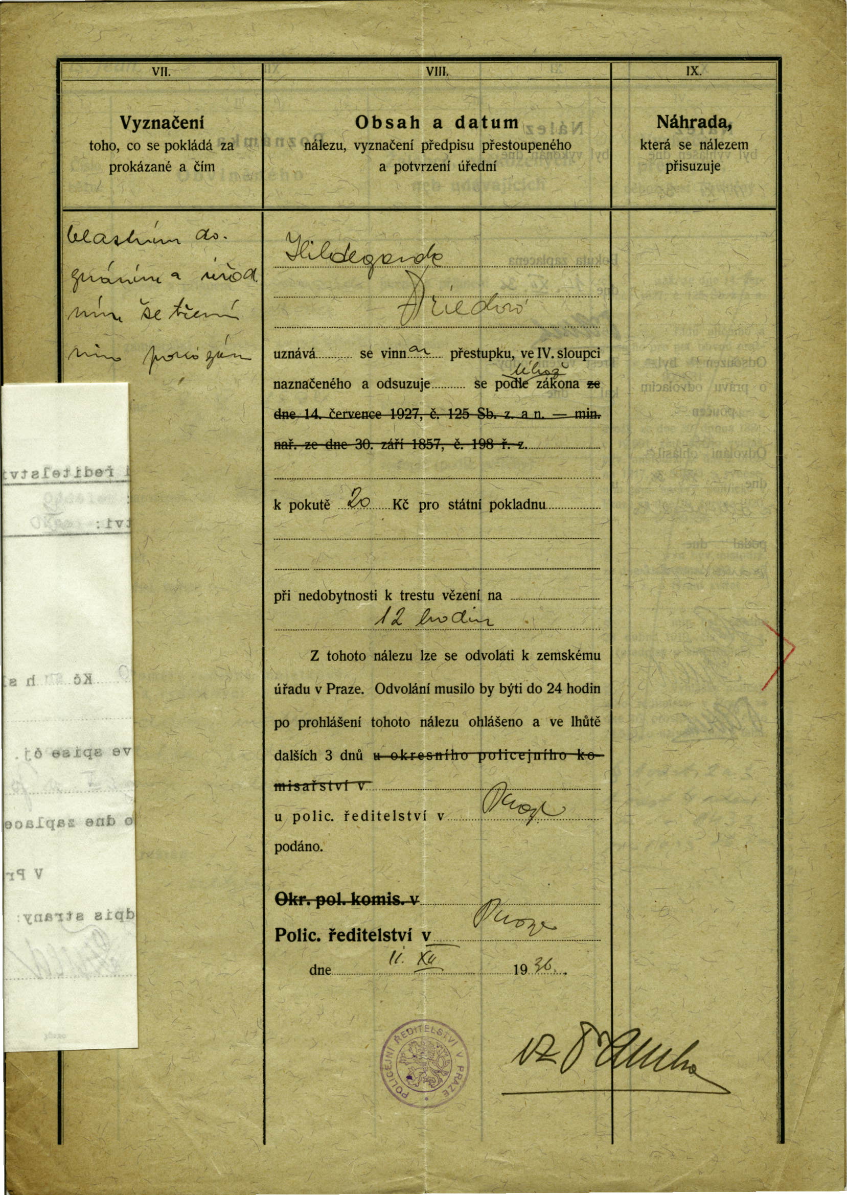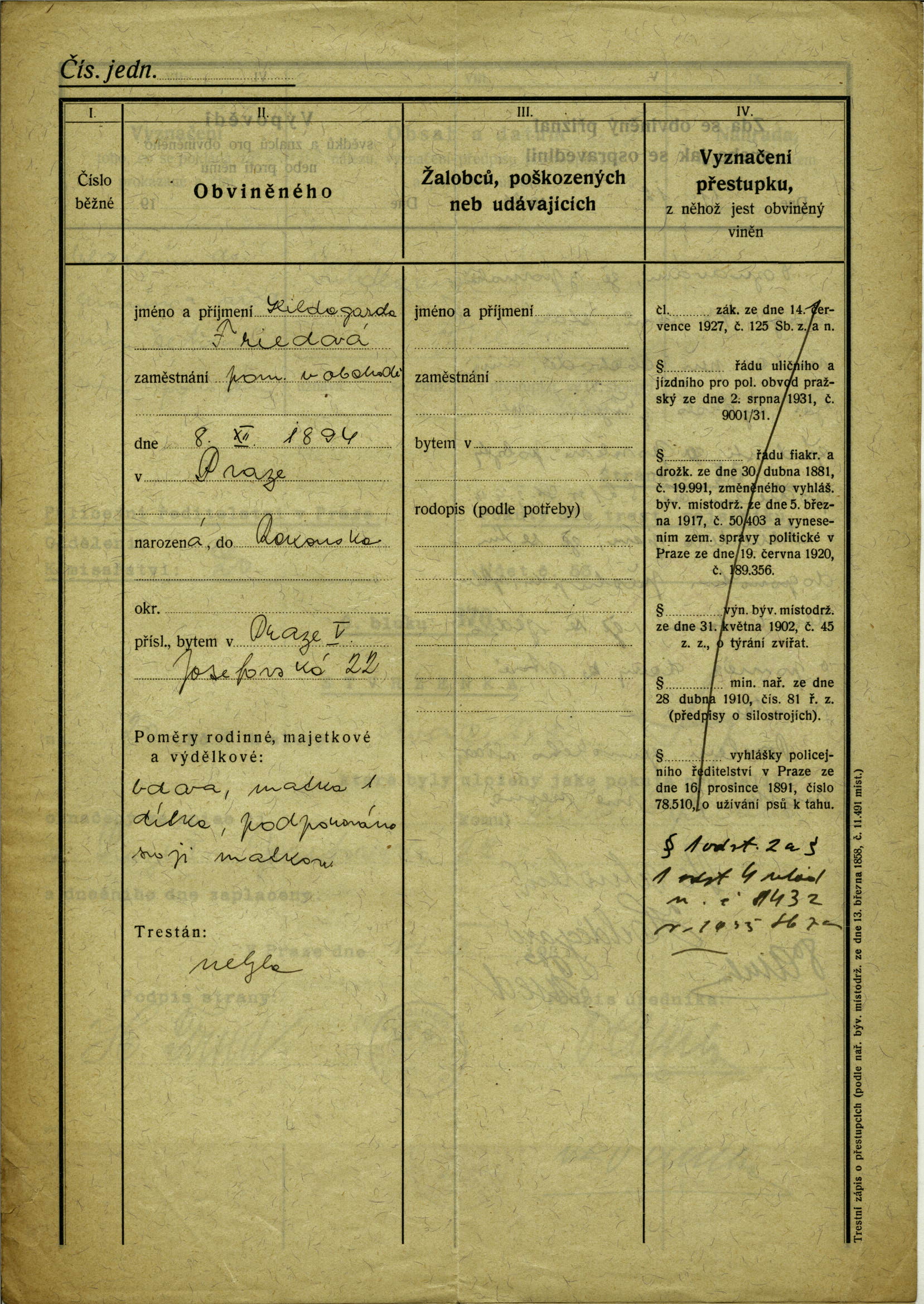 National archives Prague > Police Directorate Prague > 1941-1950 > F > Friedová Hildegard