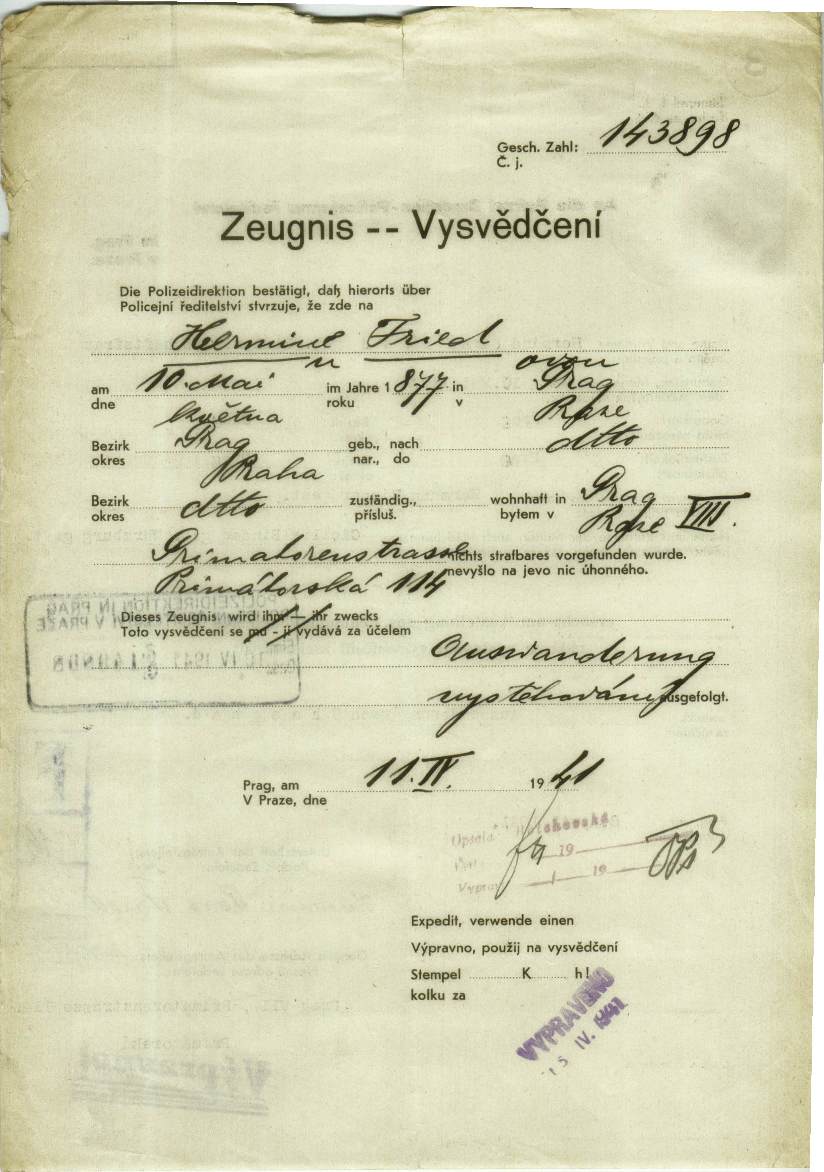 National archives Prague > Police Directorate Prague > 1941-1950 > F > Friedová Hermína