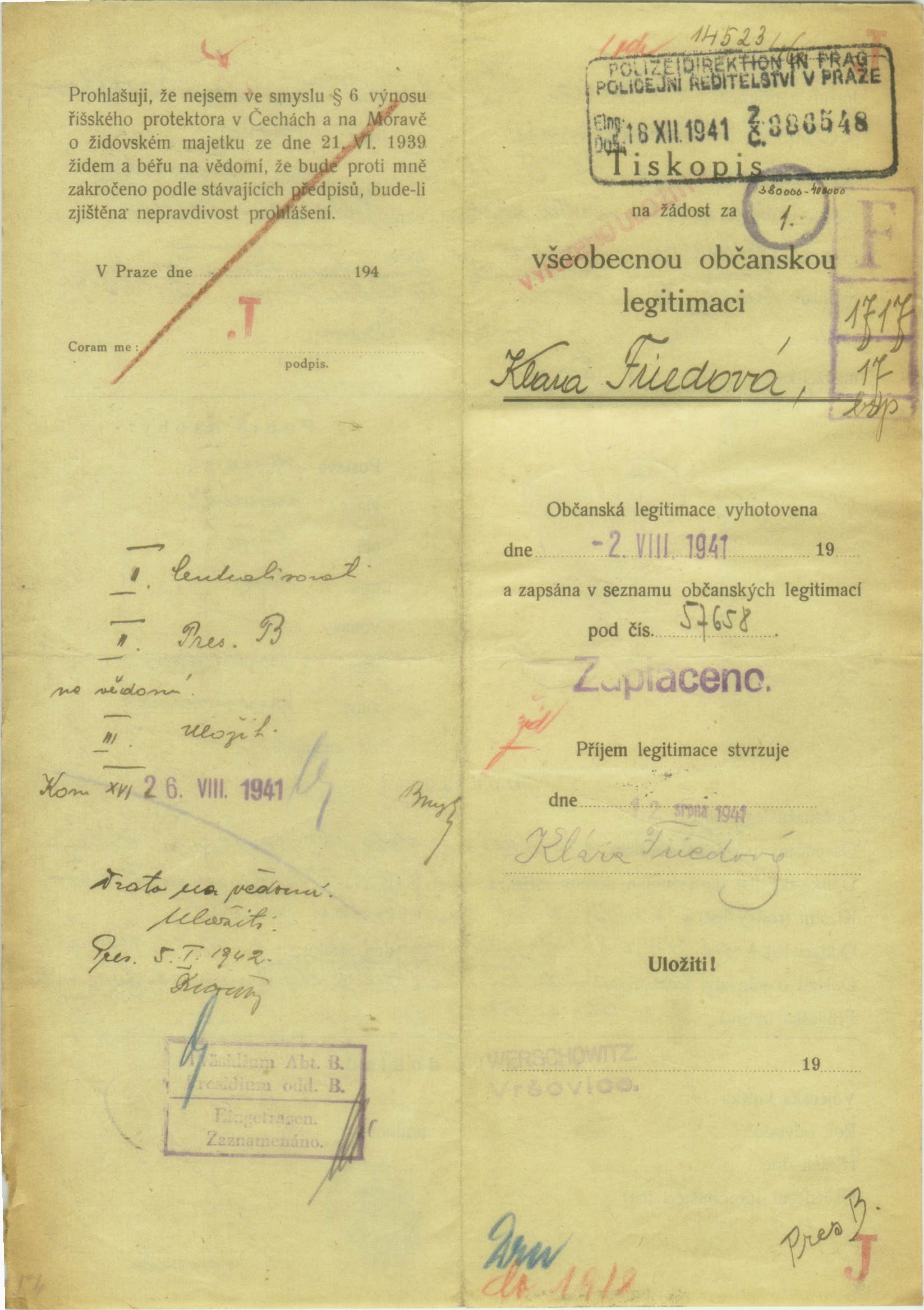 National archives Prague > Police Directorate Prague > 1941-1950 > F > Friedová Klára