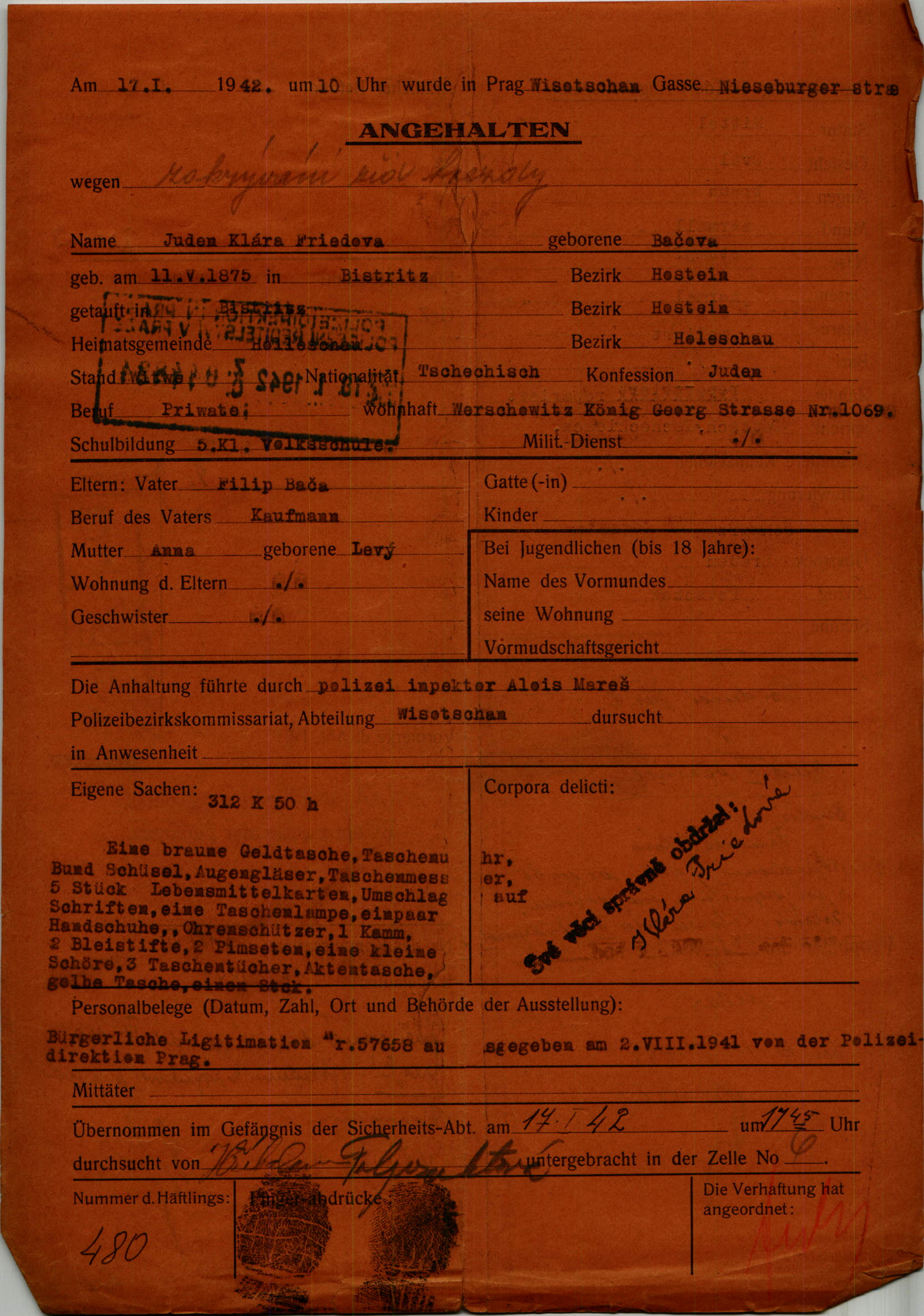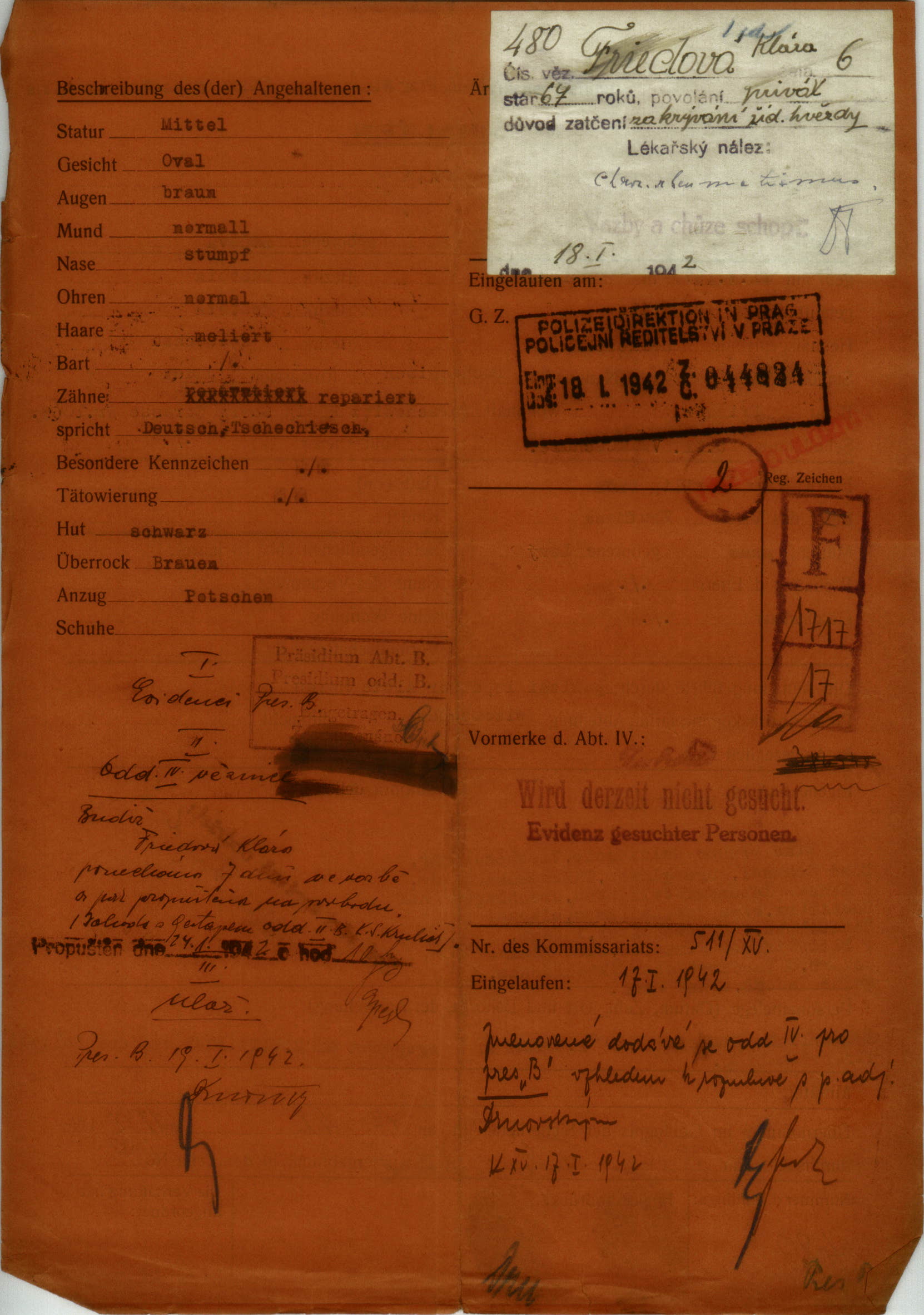 National archives Prague > Police Directorate Prague > 1941-1950 > F > Friedová Klára