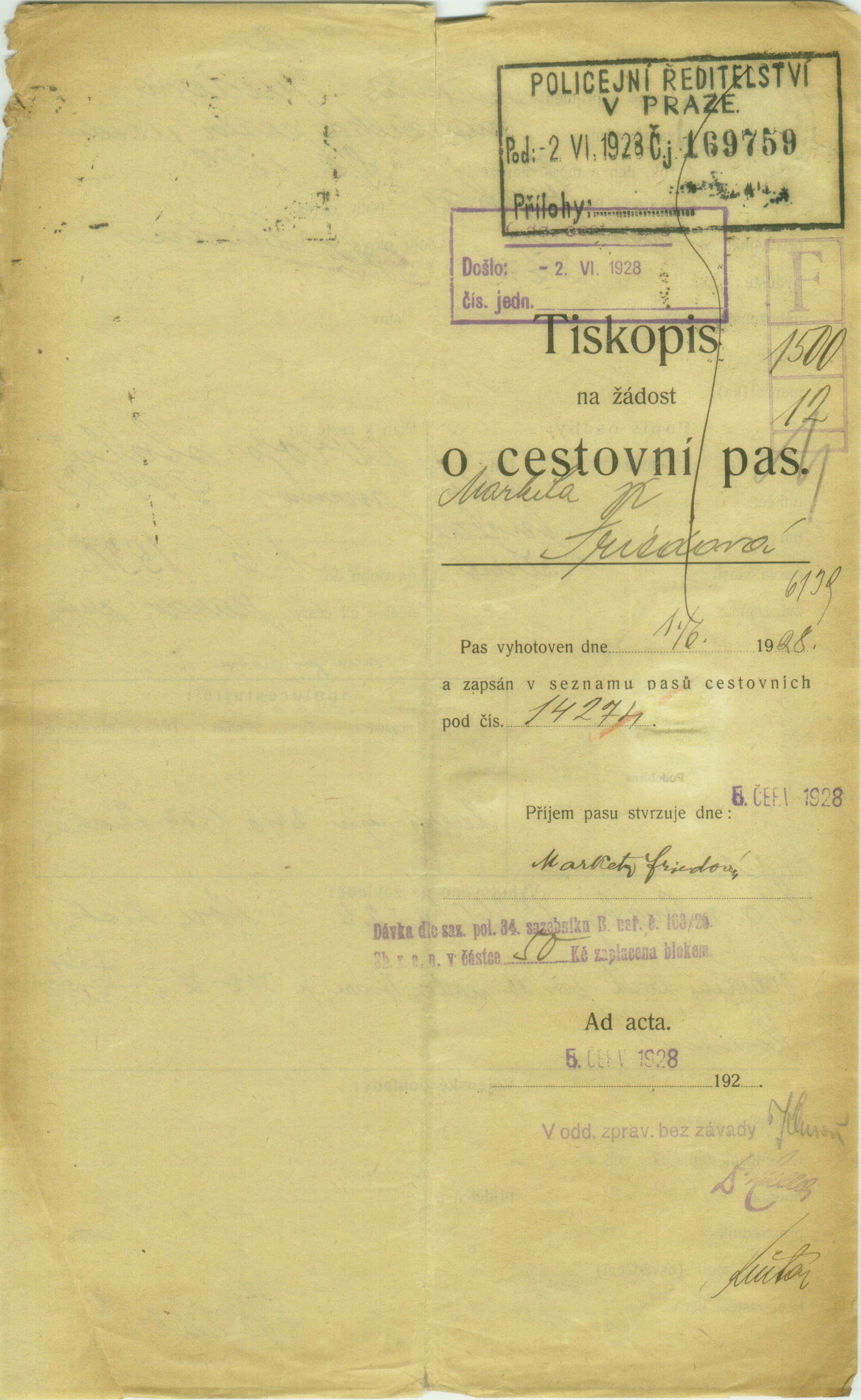 National archives Prague > Police Directorate Prague > 1941-1950 > F > Friedová Markéta