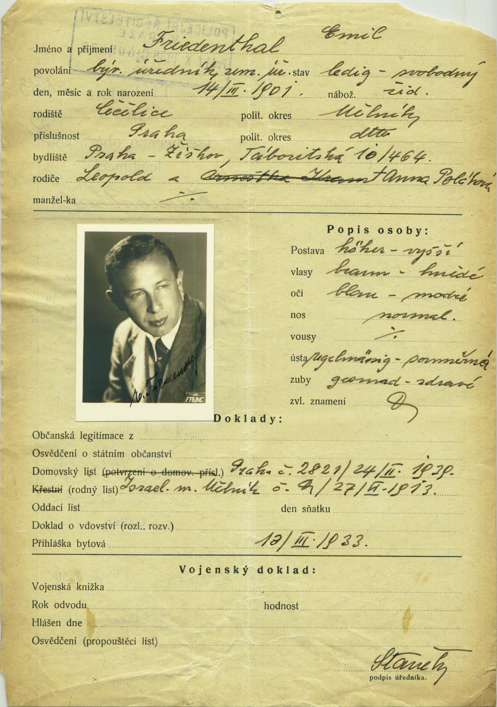 National archives Prague > Police Directorate Prague > 1941-1950 > F > Friedenthal Emil