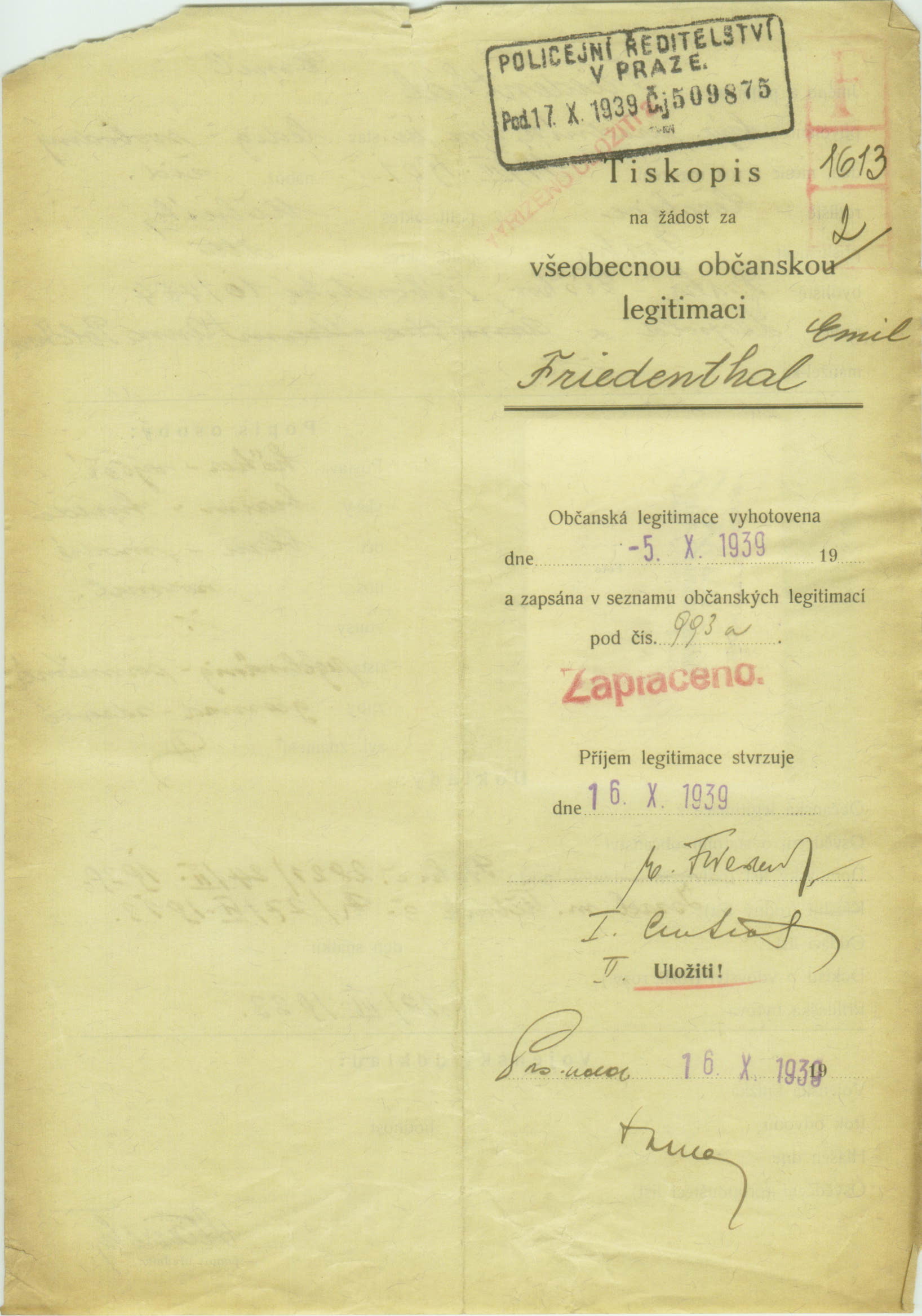 Friedenthal Emil: Identity card application