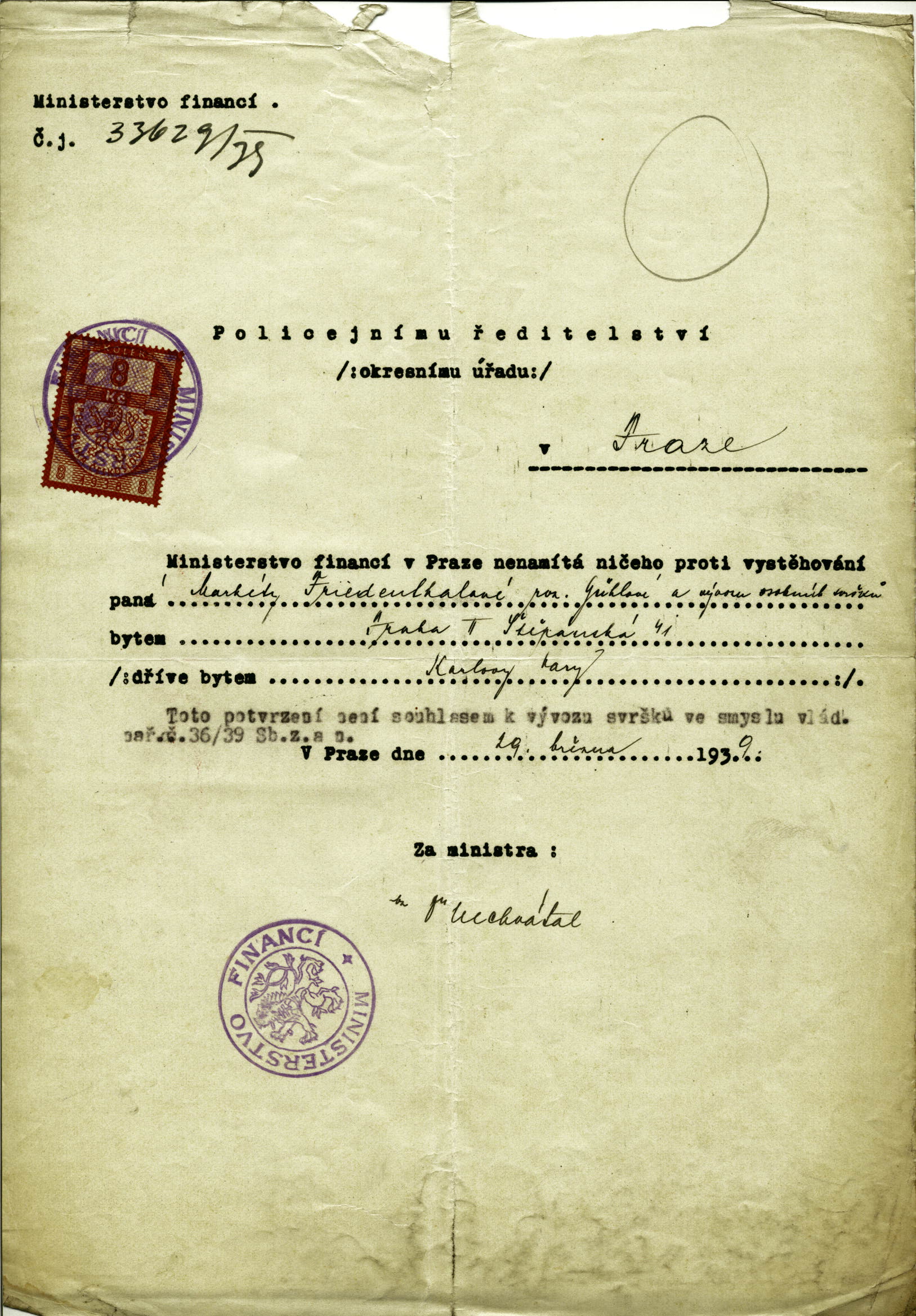 Friedenthalová Margarethe: Souhlas s vystěhováním