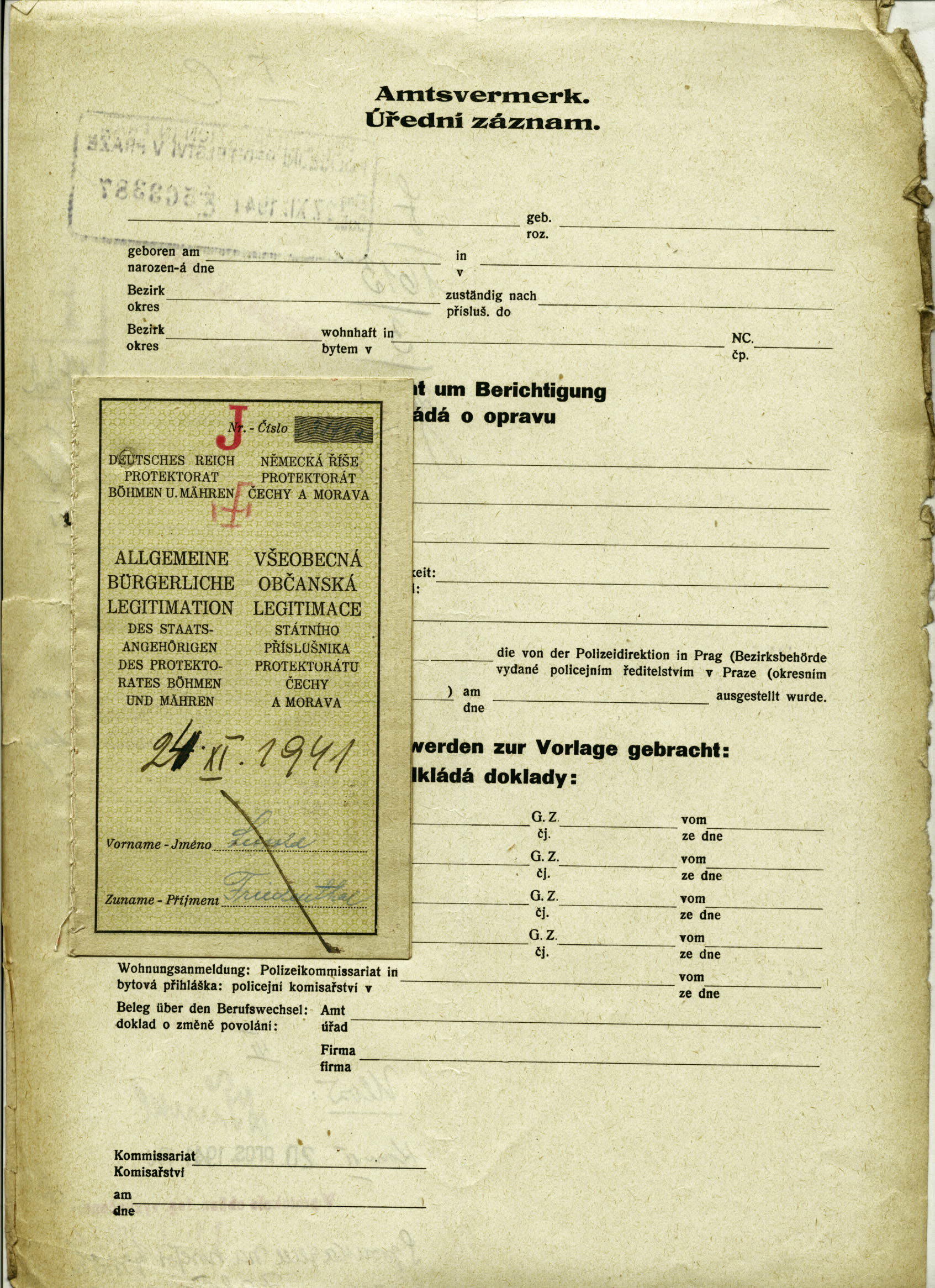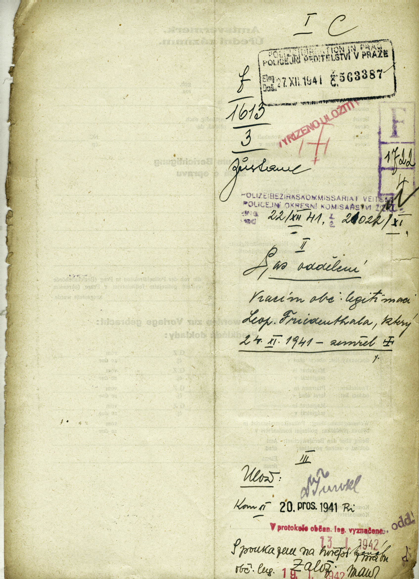 Friedenthal Leopold: Občanská legitimace