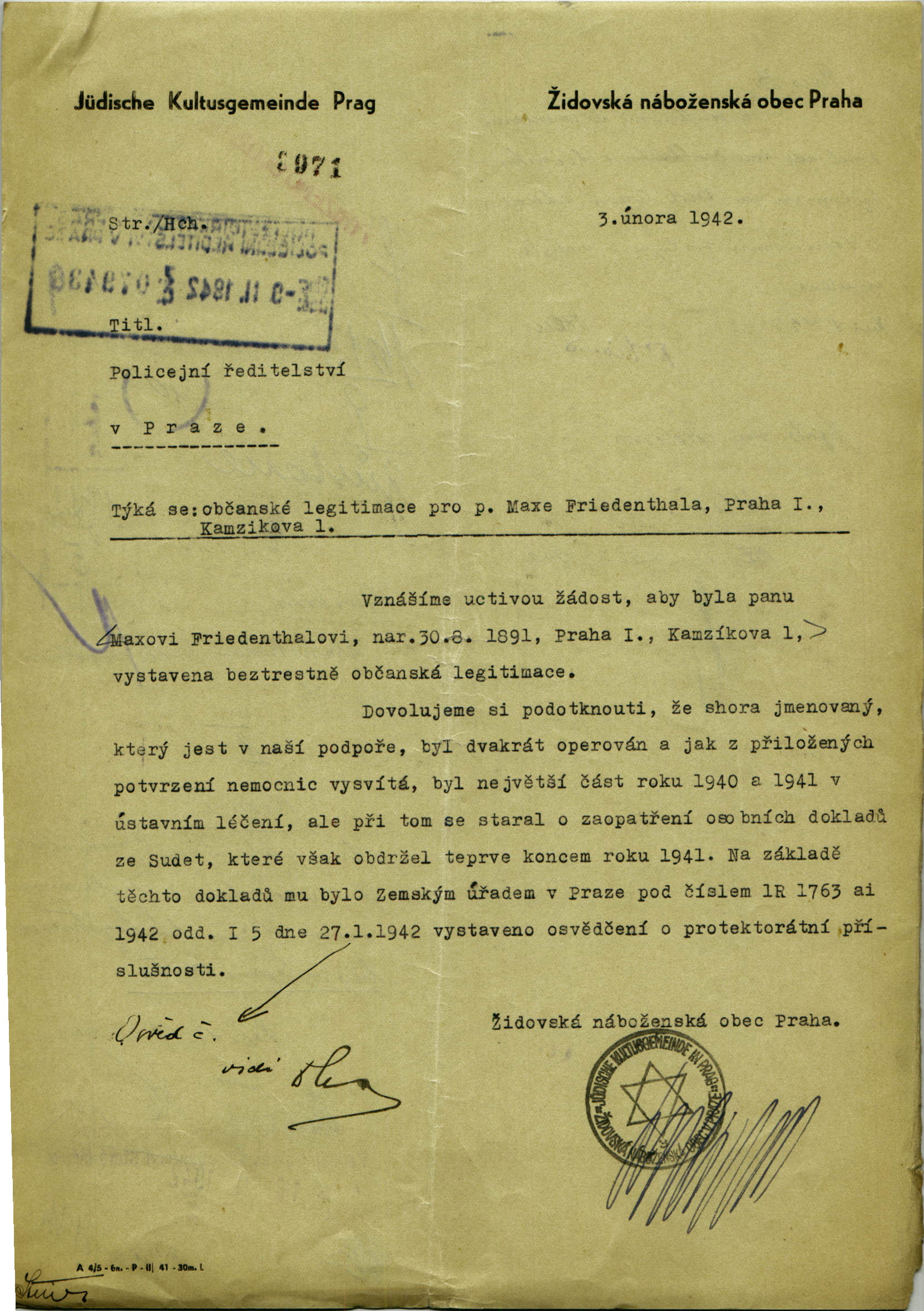 Friedenthal Max: Identity card application