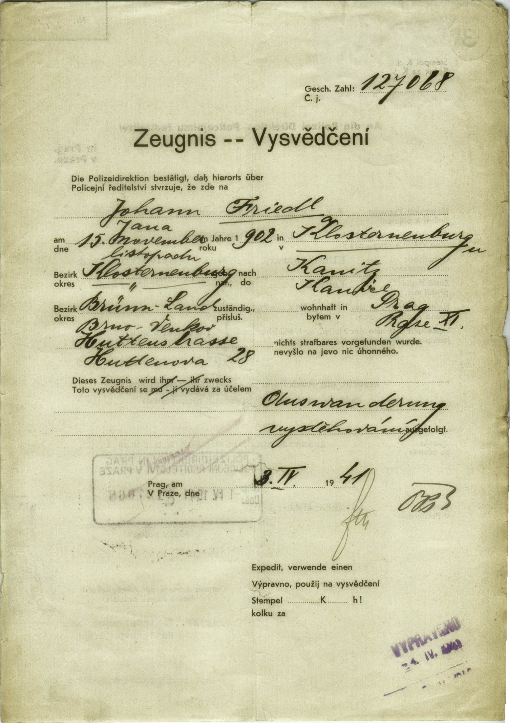 Friedl Jan: Vysvědčení zachovalosti