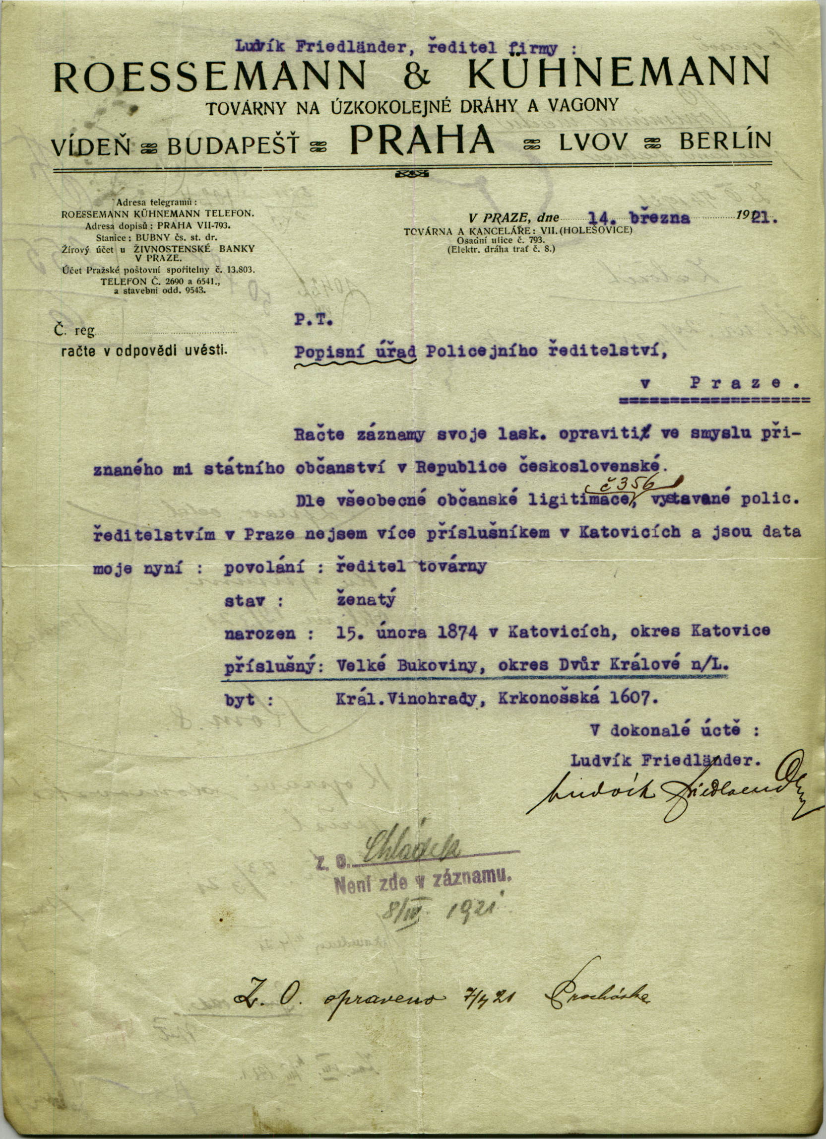 National archives Prague > Police Directorate Prague > 1941-1950 > F > Friedländer Ludvík