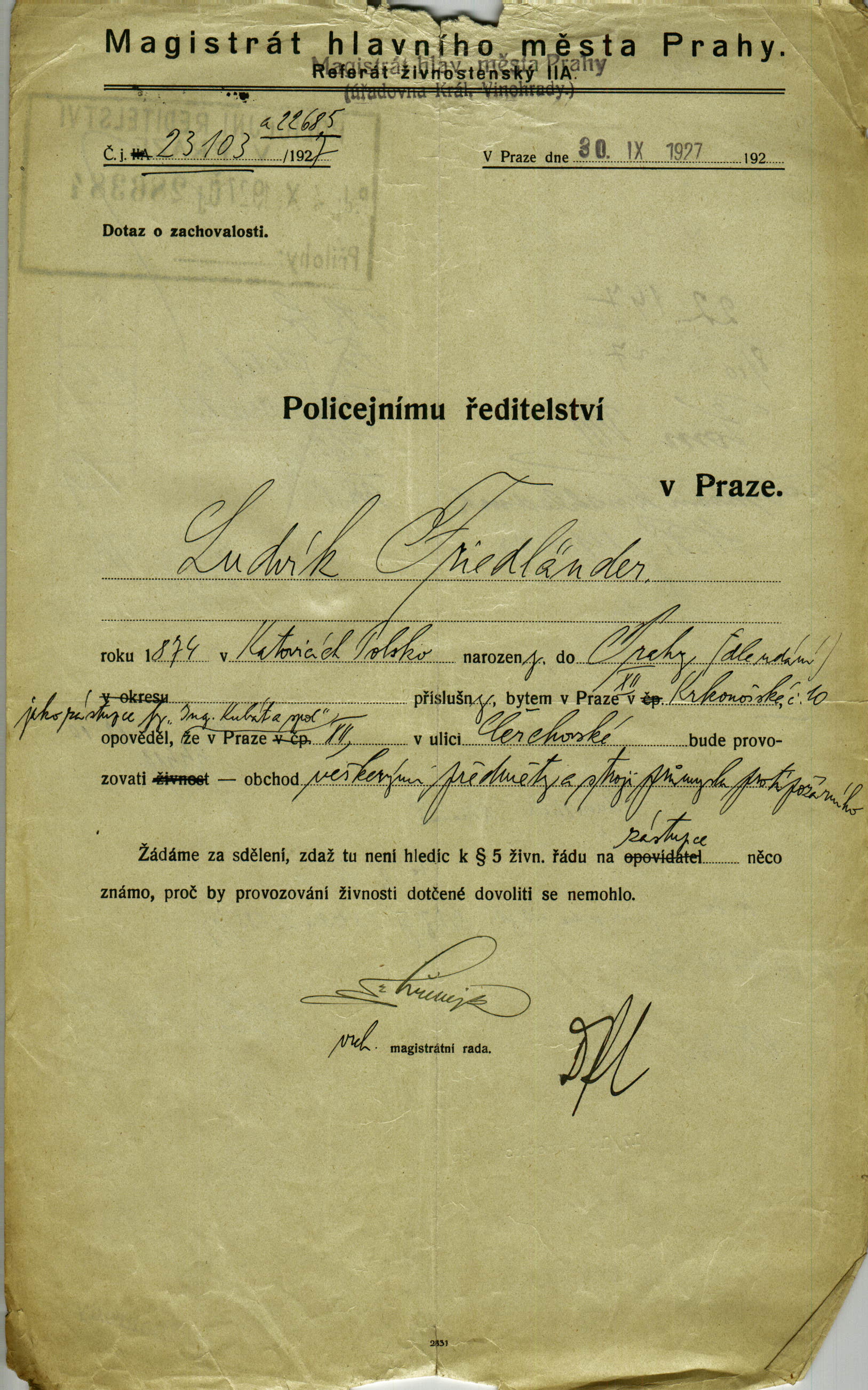 National archives Prague > Police Directorate Prague > 1941-1950 > F > Friedländer Ludvík
