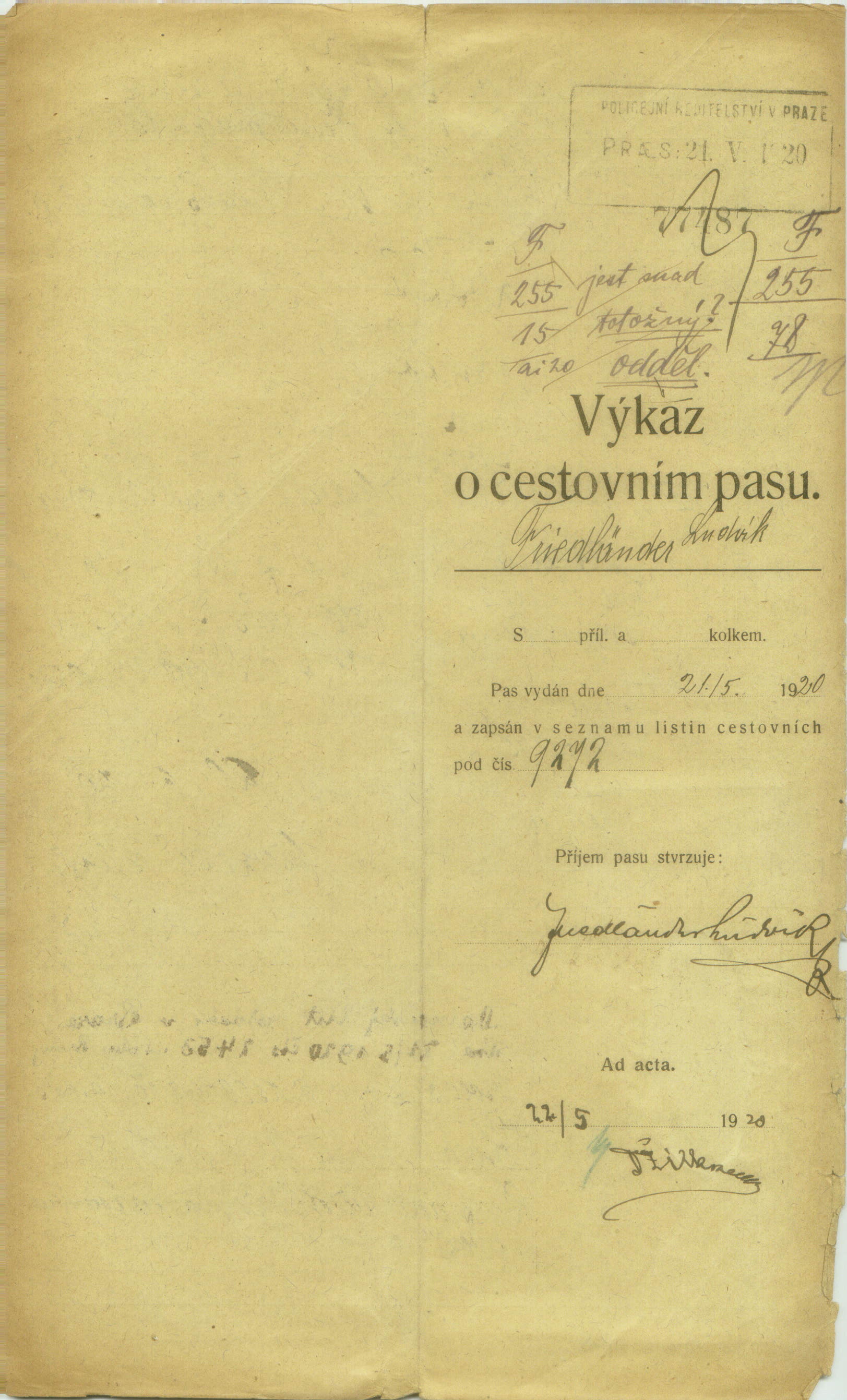 National archives Prague > Police Directorate Prague > 1941-1950 > F > Friedländer Ludvík