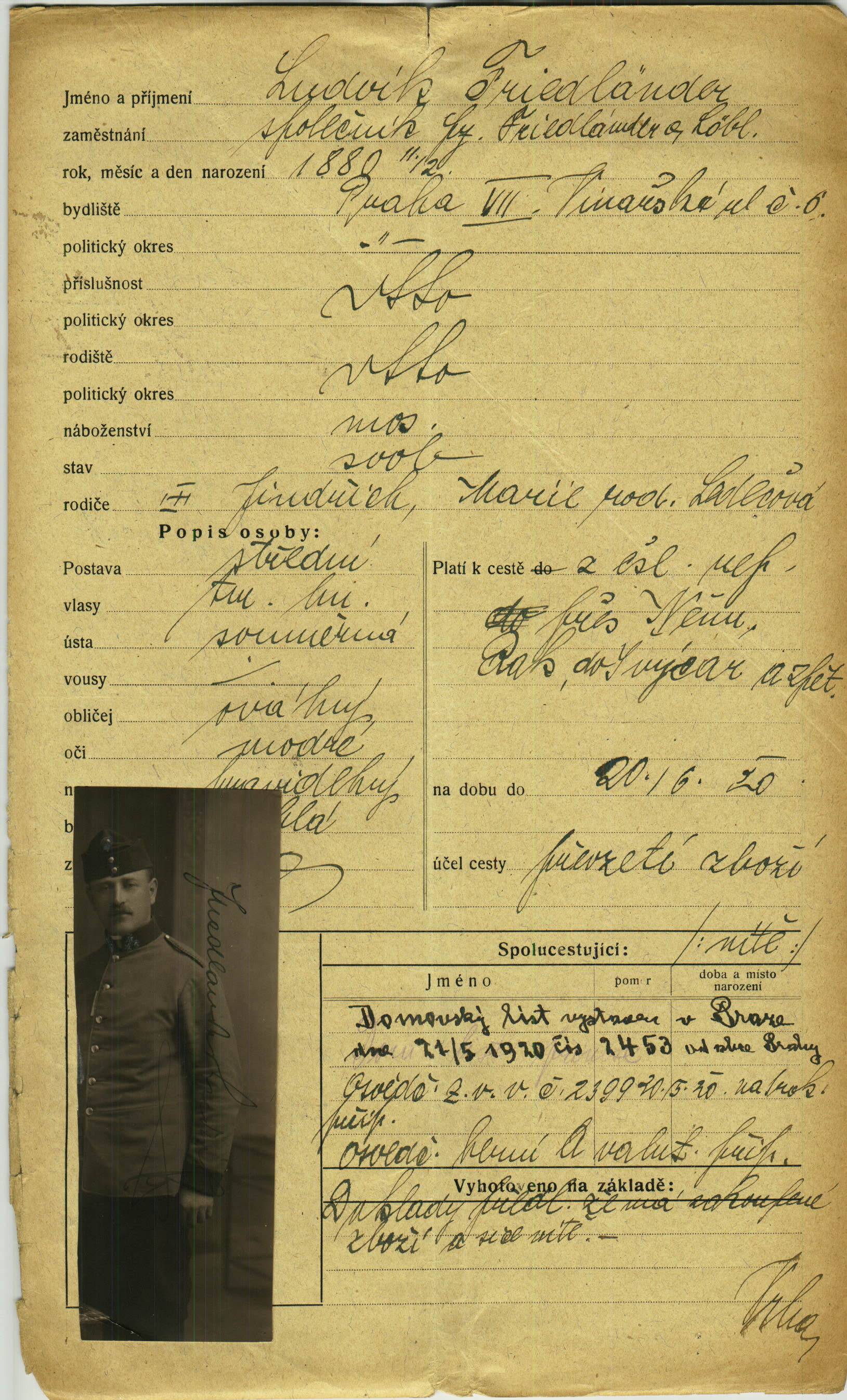 Friedländer Ludvík: Passport application