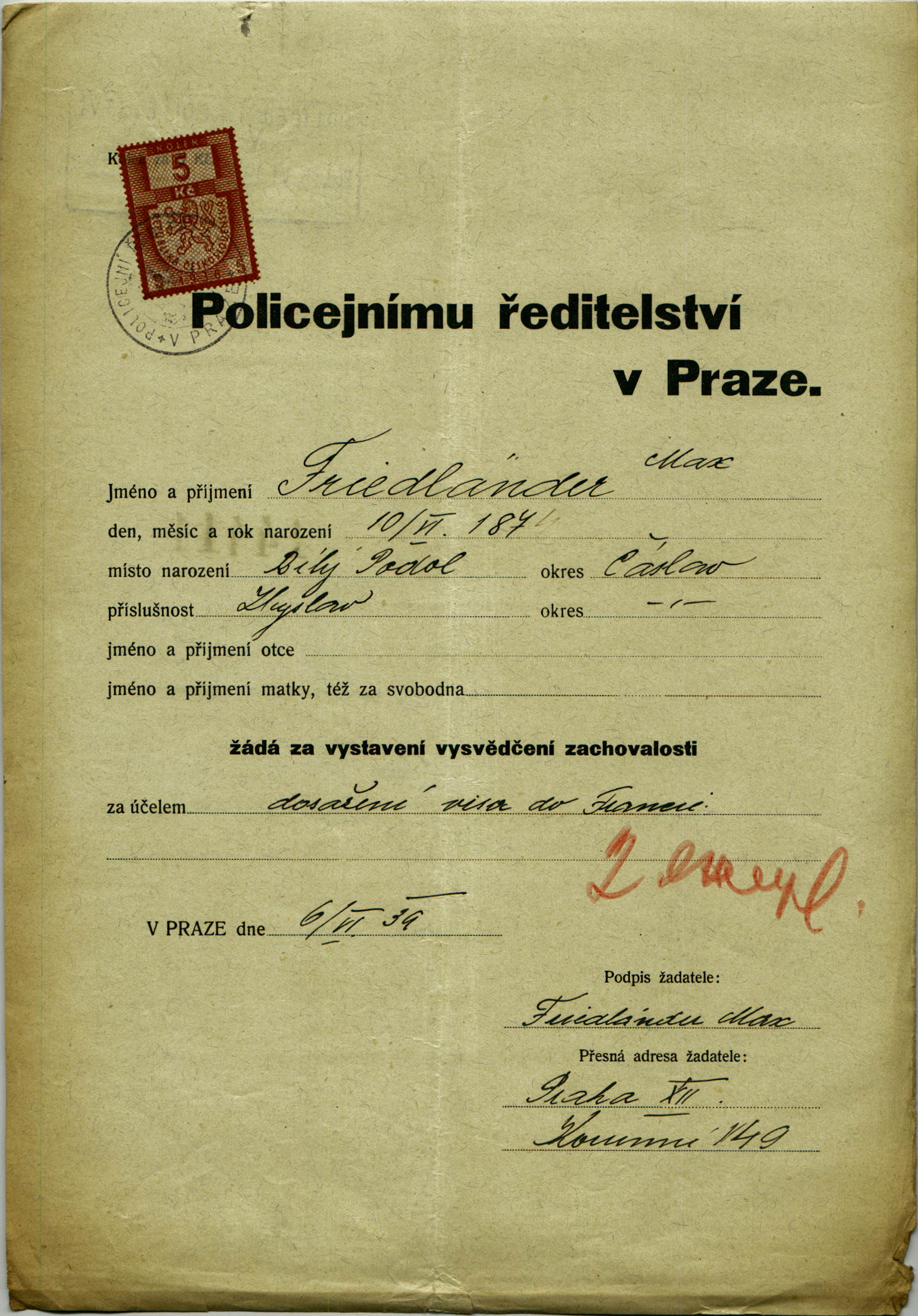 National archives Prague > Police Directorate Prague > 1941-1950 > F > Friedländer Max