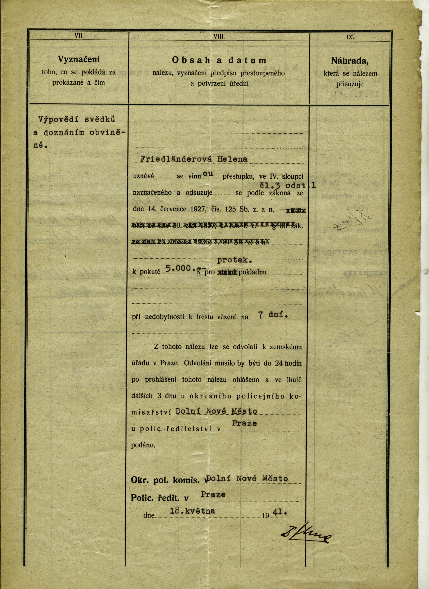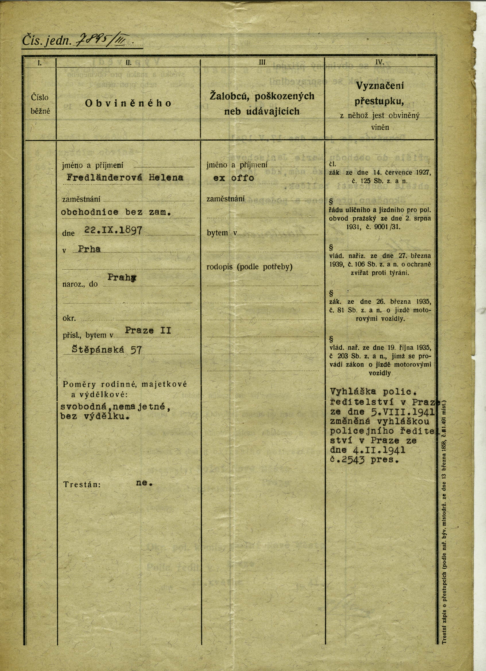 National archives Prague > Police Directorate Prague > 1941-1950 > F > Friedländerová Helena