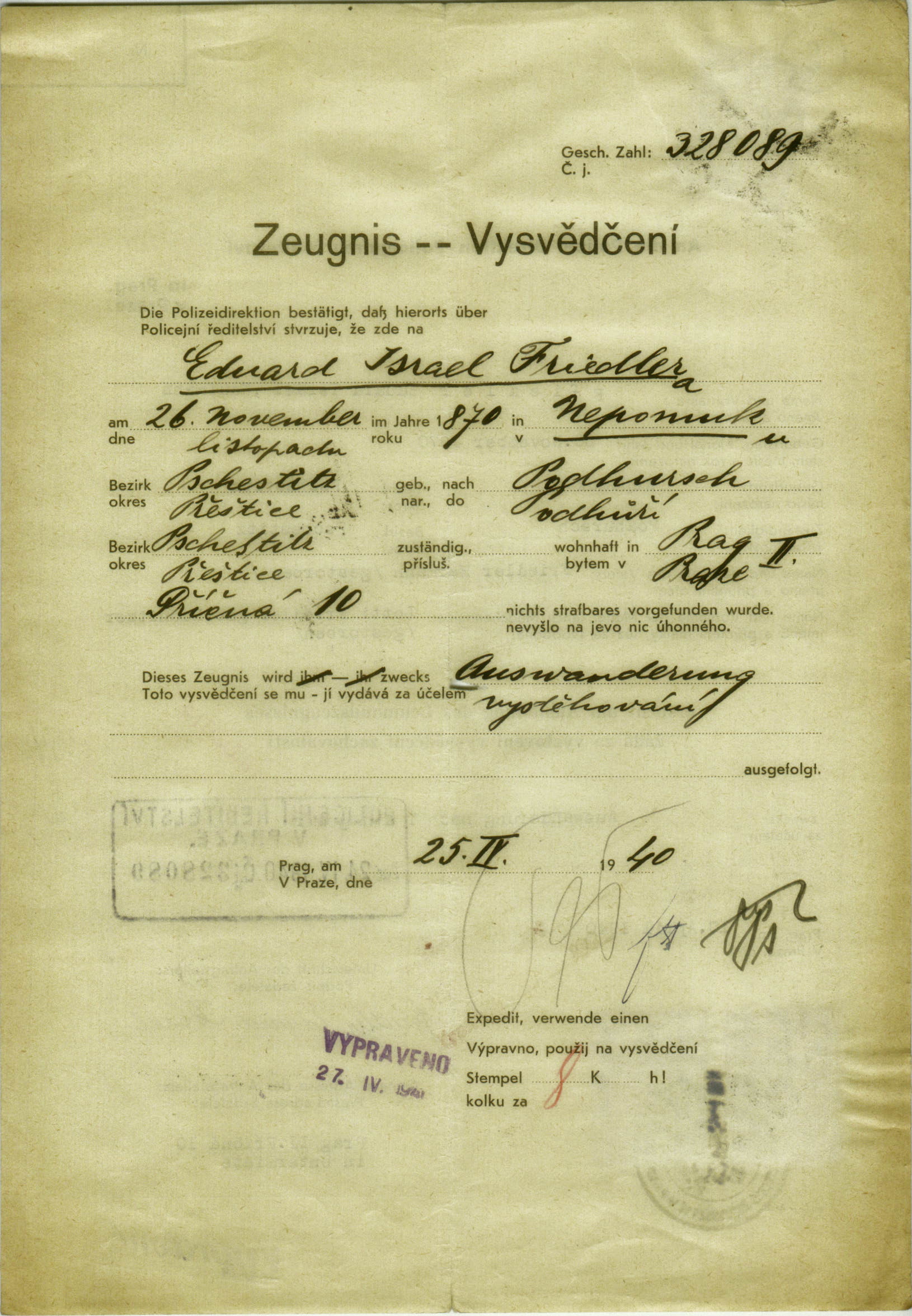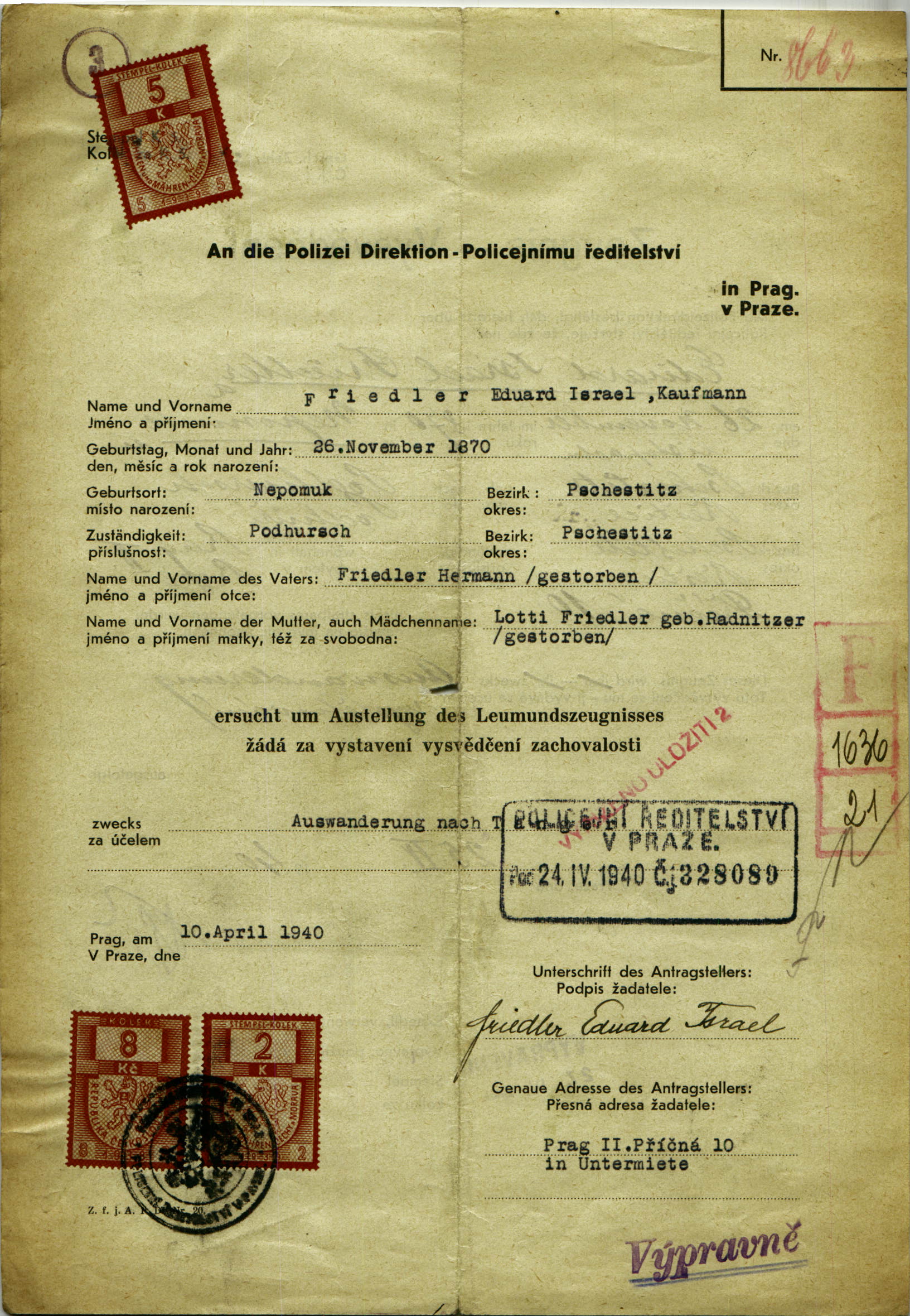National archives Prague > Police Directorate Prague > 1941-1950 > F > Friedler Edvard